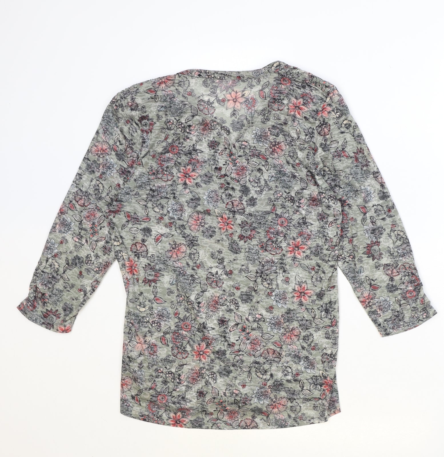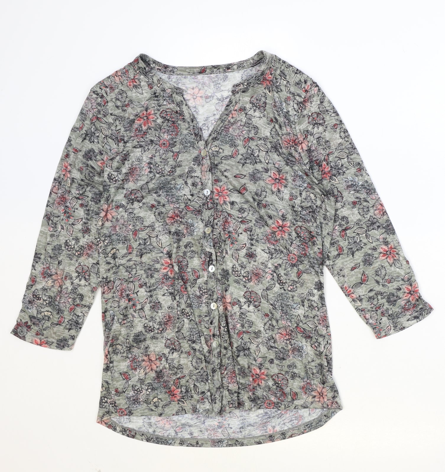 M&Co Womens Green Floral Polyester Basic Button-Up Size 12 V-Neck