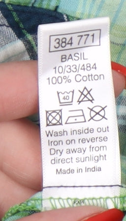M&Co Women's Green Plaid Button-Up Cropped Shirt Size 12