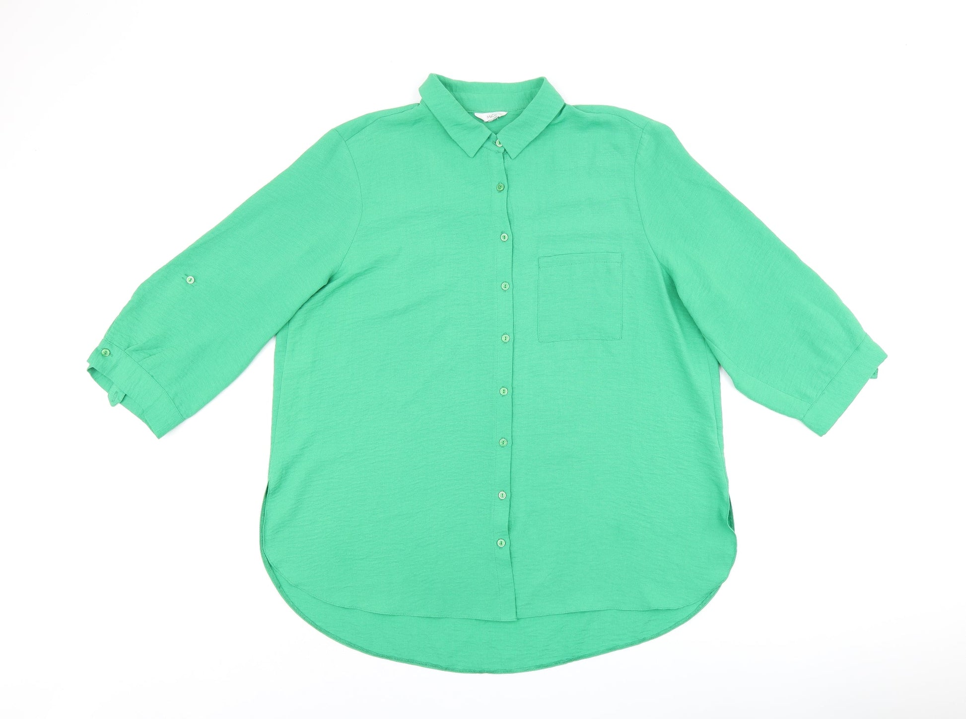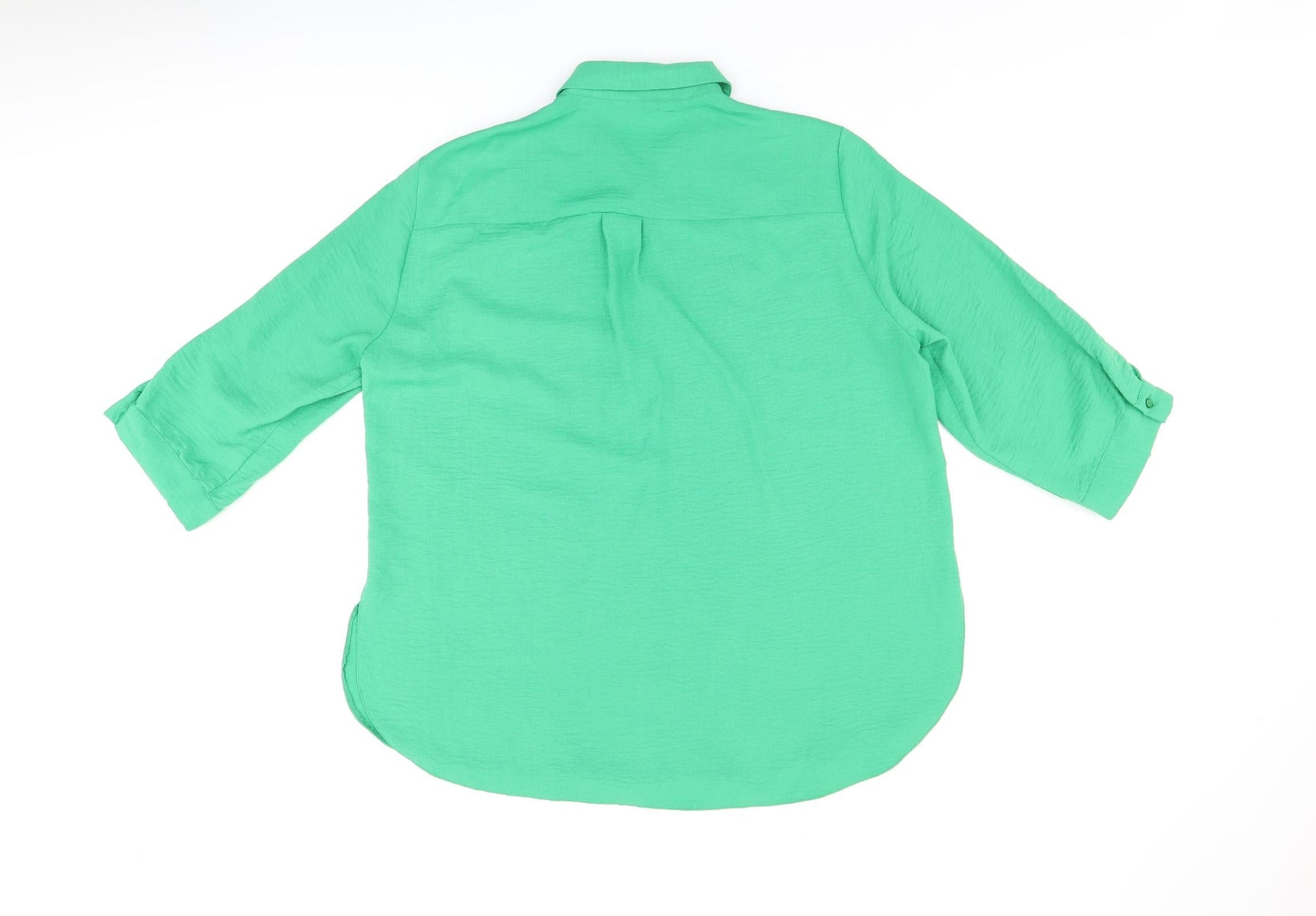 M&Co Womens Green Polyester Basic Button-Up Size 18 Collared
