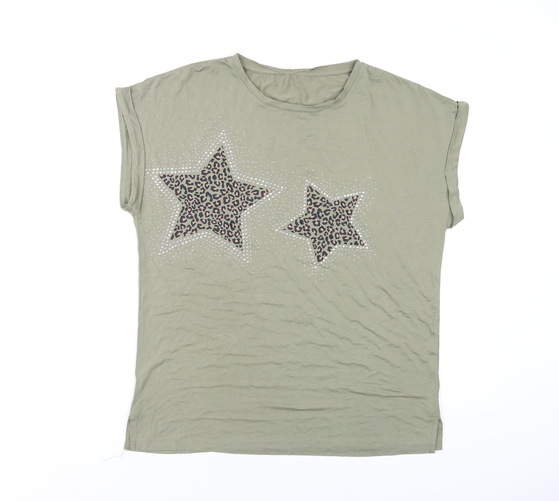 M&Co Womens Green Viscose Basic T-Shirt Size 10 Round Neck