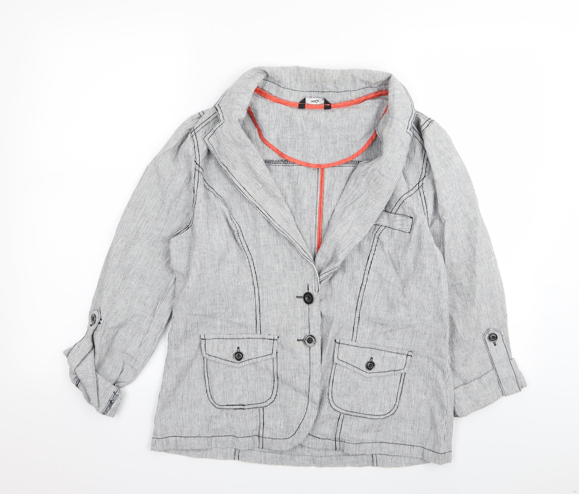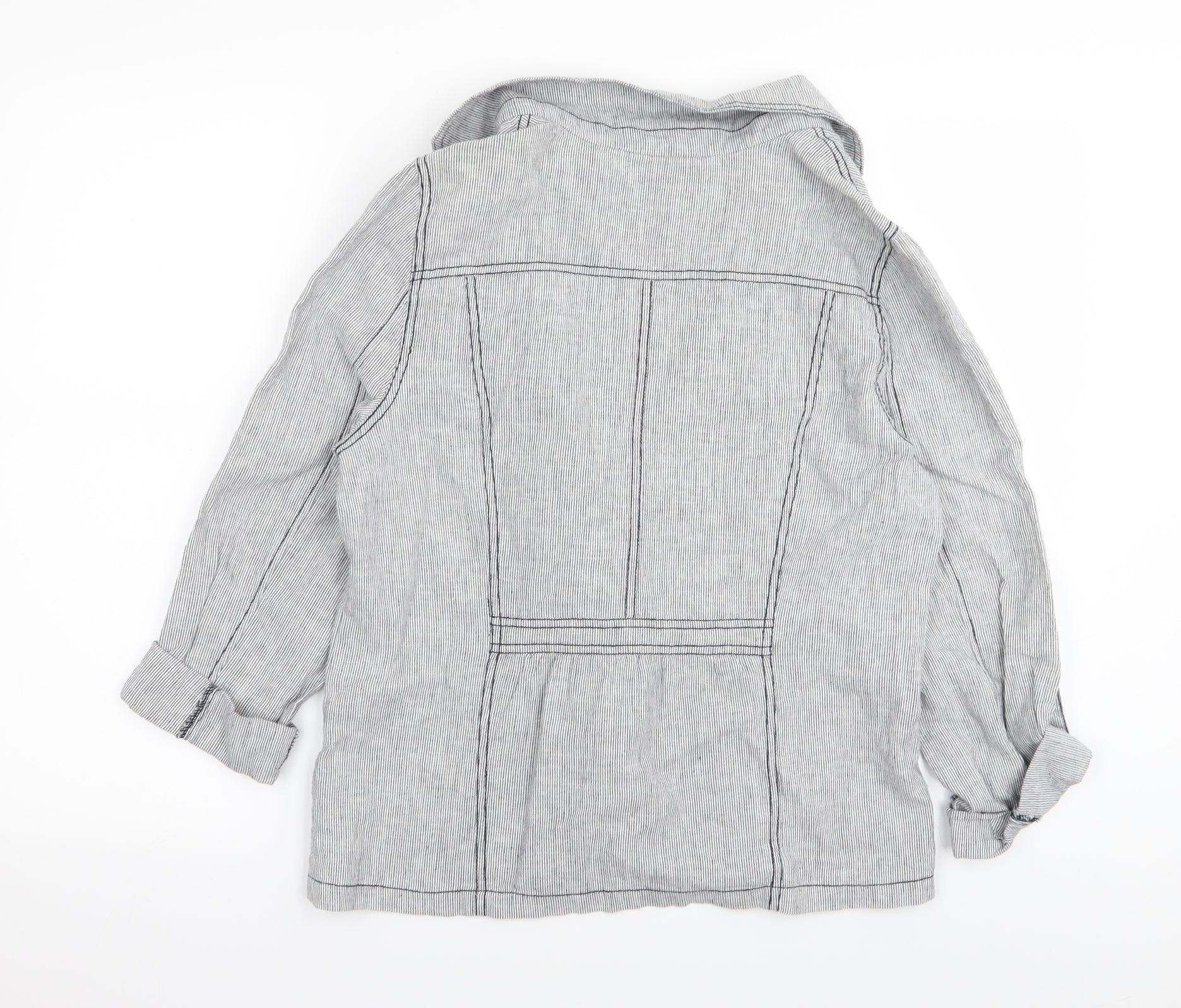 M&Co Womens Grey Striped Jacket Blazer Size 14