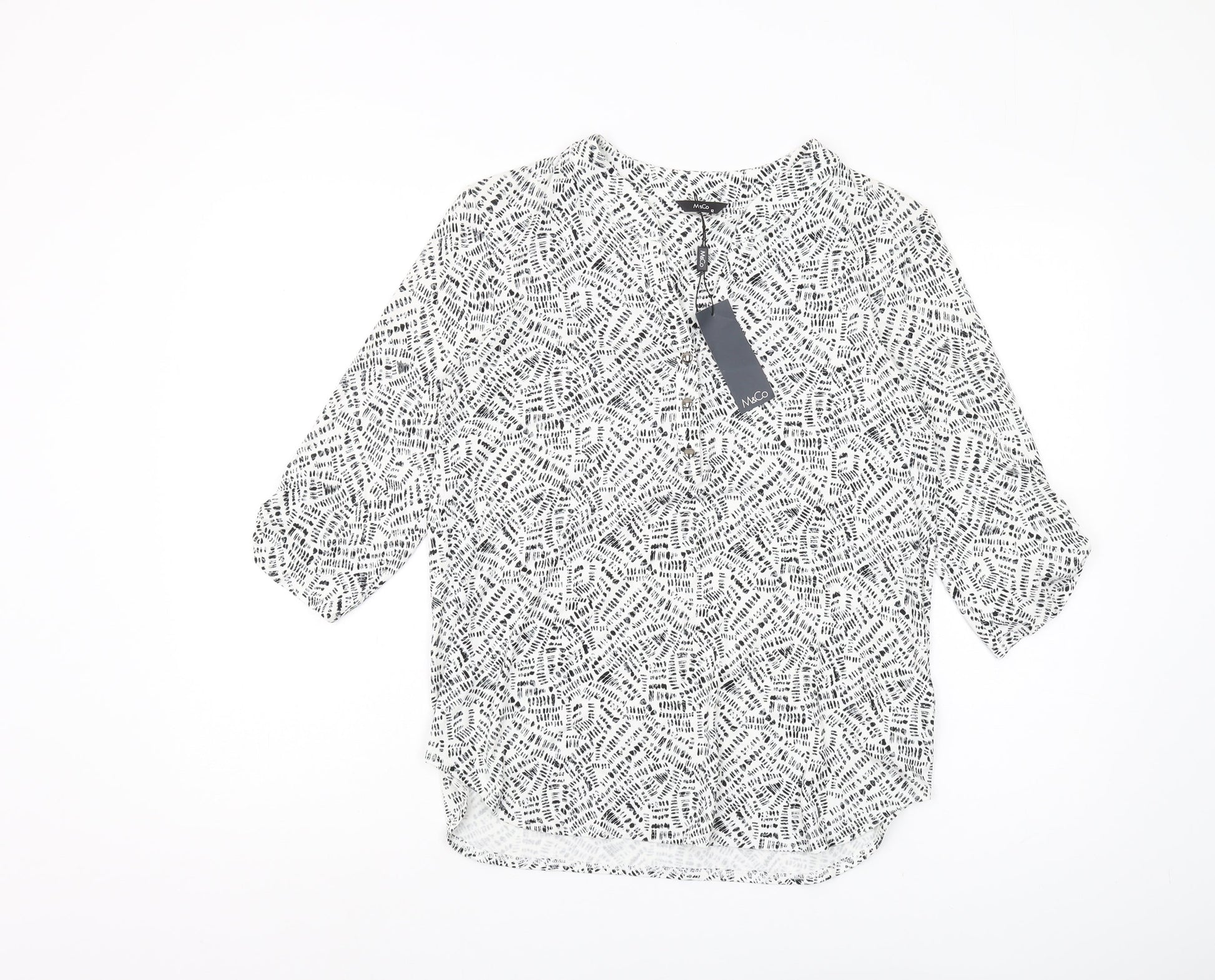 M&Co Women's Ivory Geometric 3/4 Sleeve Blouse Size 12