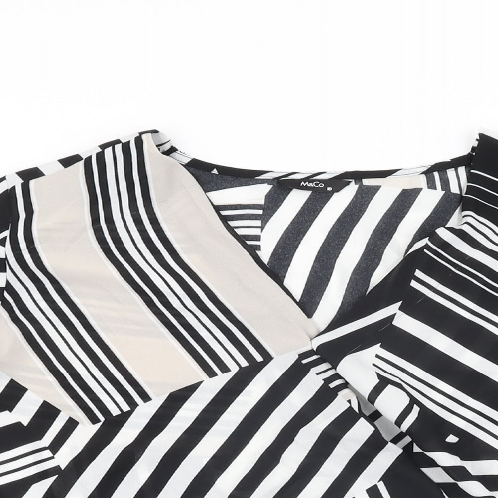 M&Co Womens Multicoloured Geometric Polyester Basic Blouse Size 10 V-Neck
