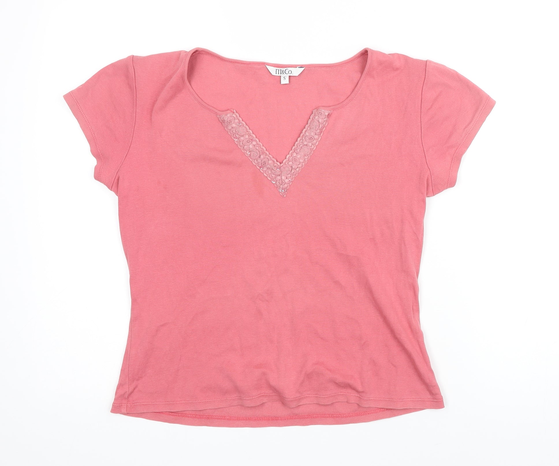 M&Co Womens Pink 100% Cotton Basic T-Shirt Size S Sweetheart