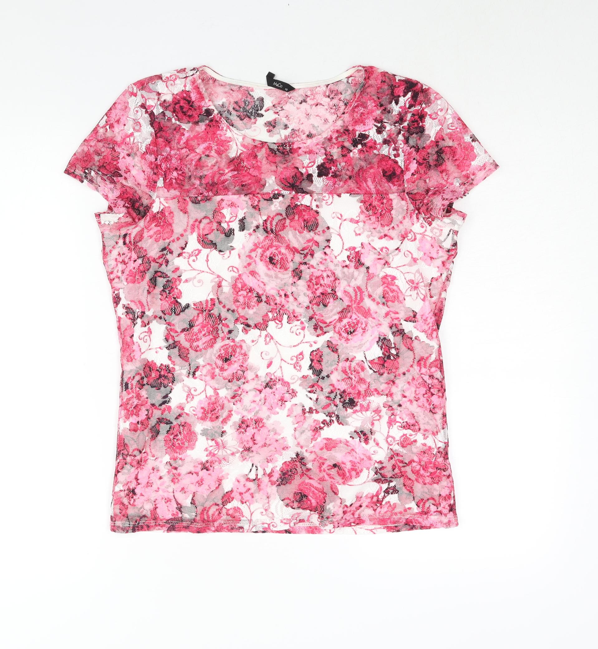 M&Co Womens Pink Geometric Polyester Basic Blouse Size 10 Round Neck
