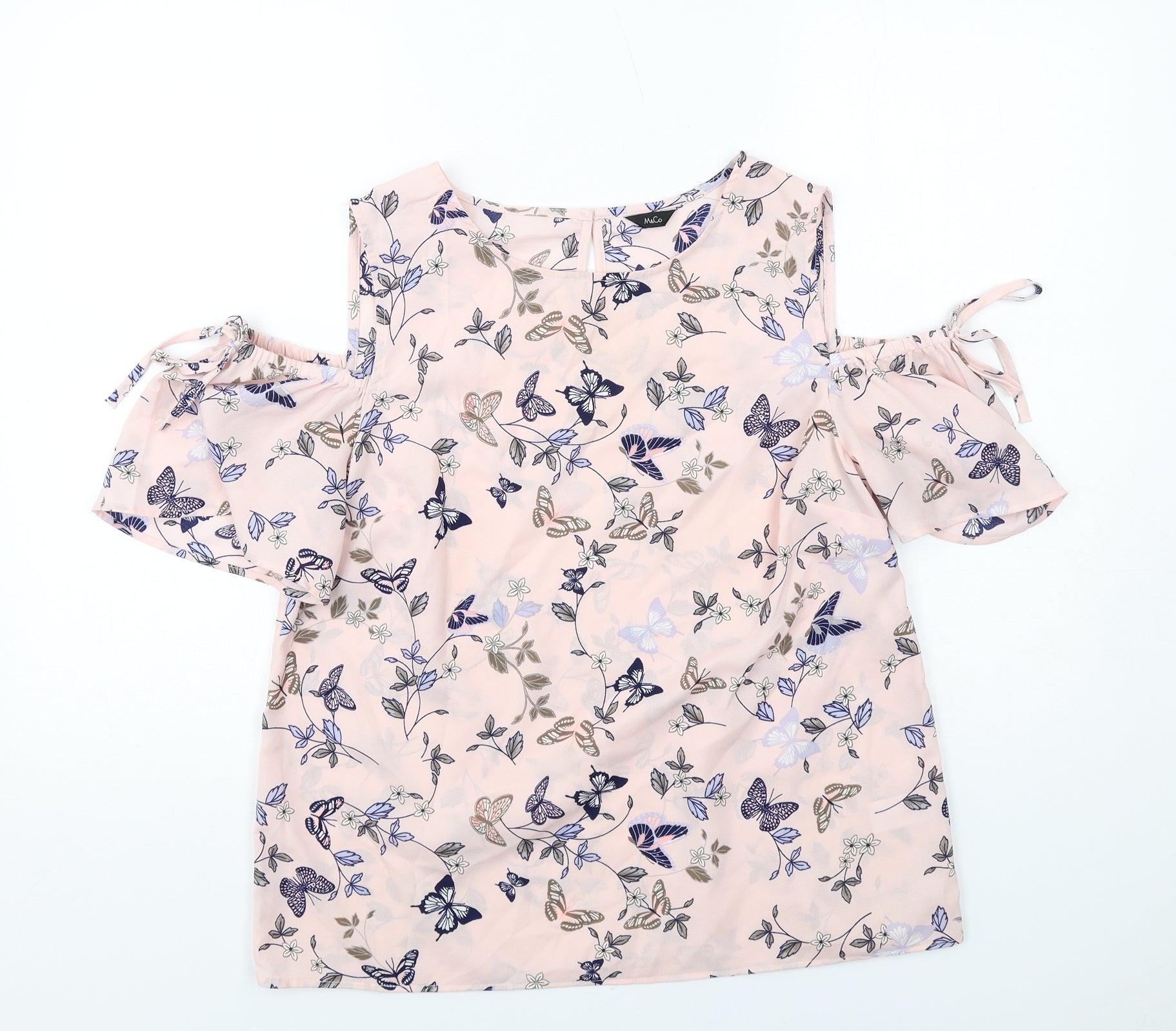M&Co Womens Pink Geometric Polyester Basic Blouse Size 12 Round Neck - Butterfly Pattern Cold Shoulder
