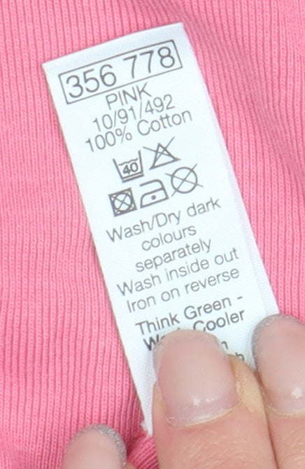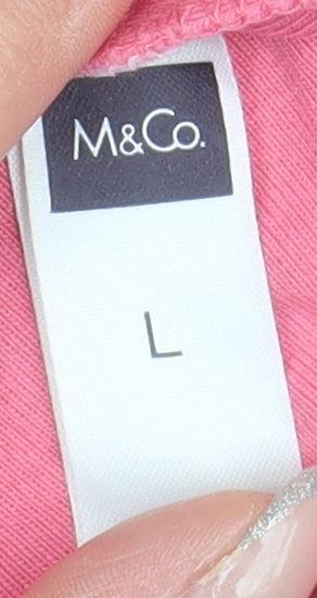 M&Co Women's Pink Henley T-Shirt, Size L, Short Sleeve