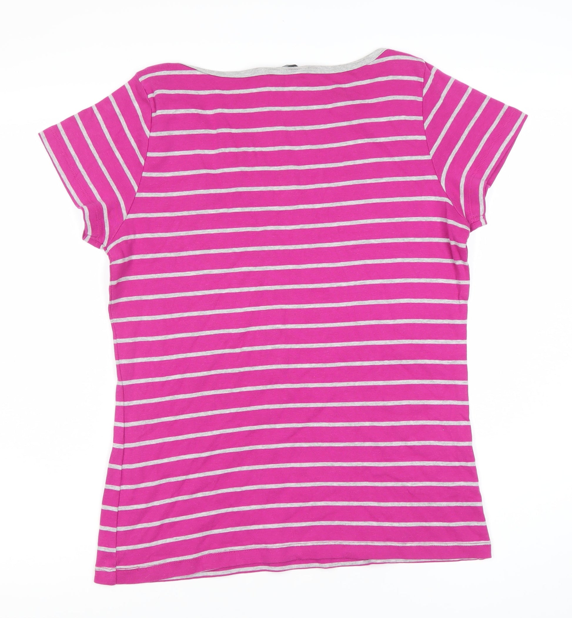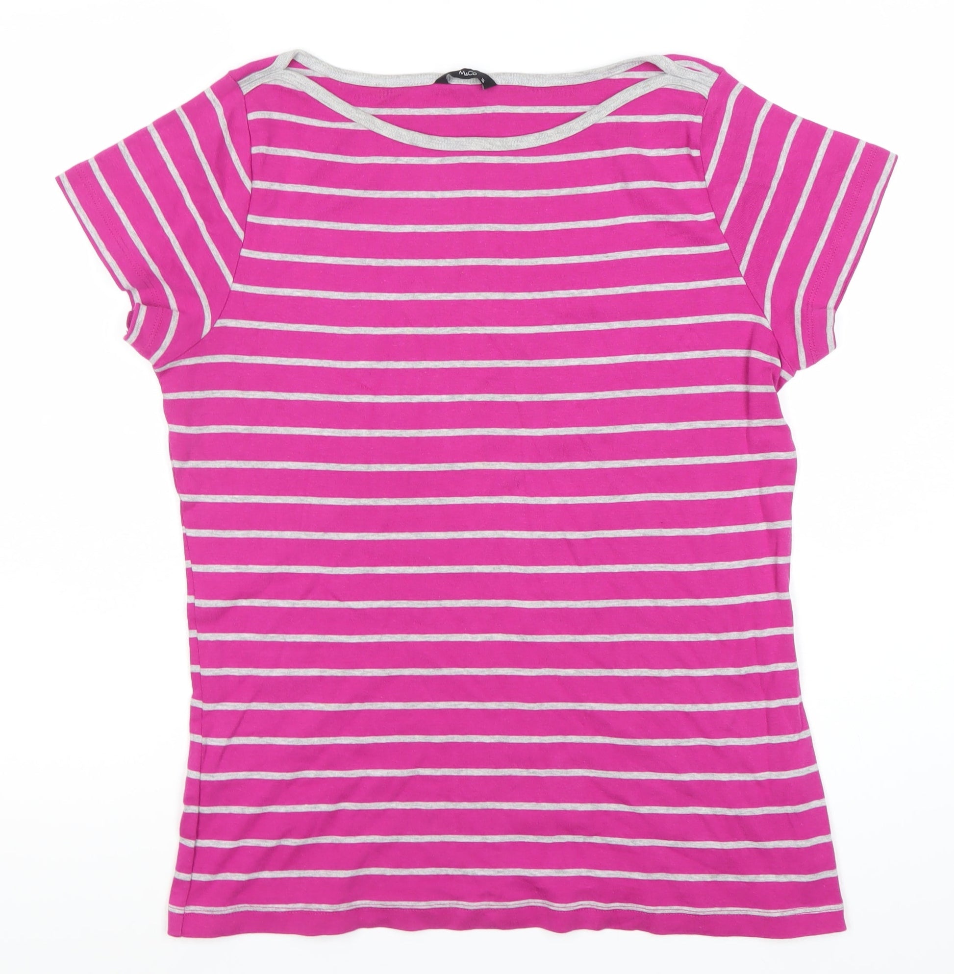 M&Co Women's Pink Striped T-Shirt, Size 16