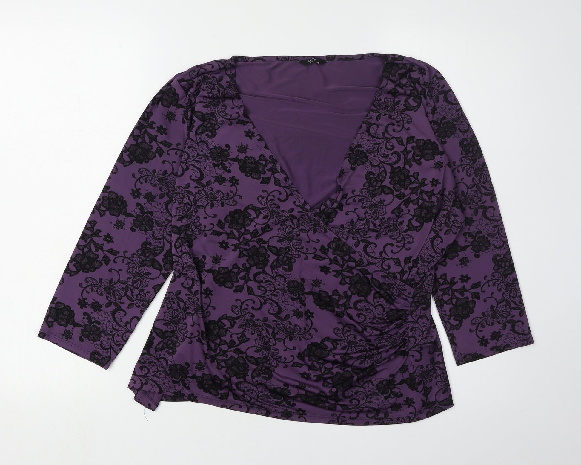 M&Co Women's Purple Floral Wrap Blouse Size 16