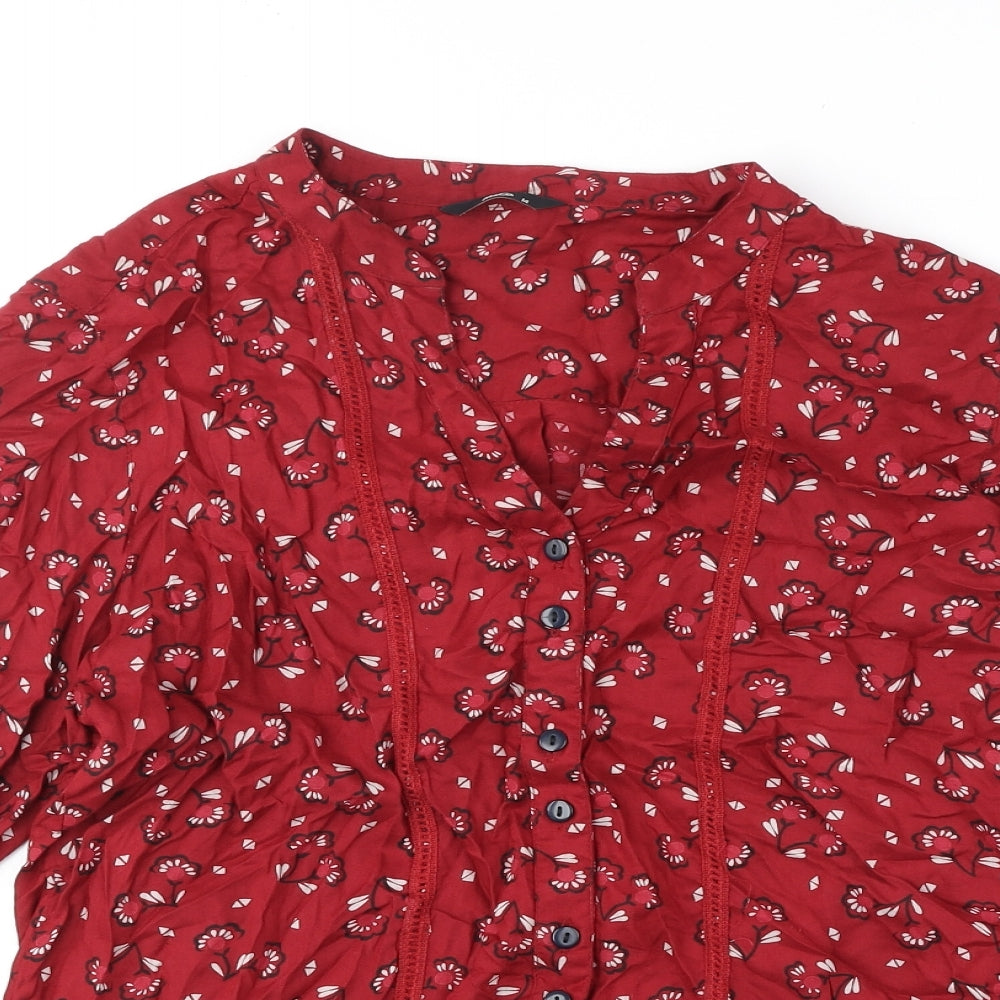 M&Co Womens Red Geometric Polyester Basic Button-Up Size 14 V-Neck