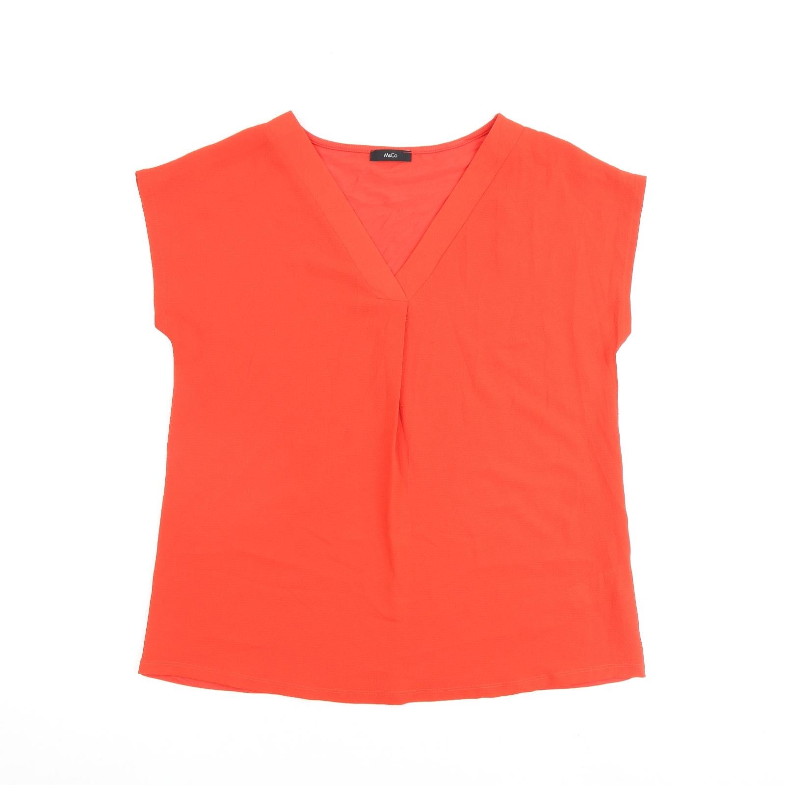 M&Co Womens Red Polyester Basic Blouse Size 10 V-Neck
