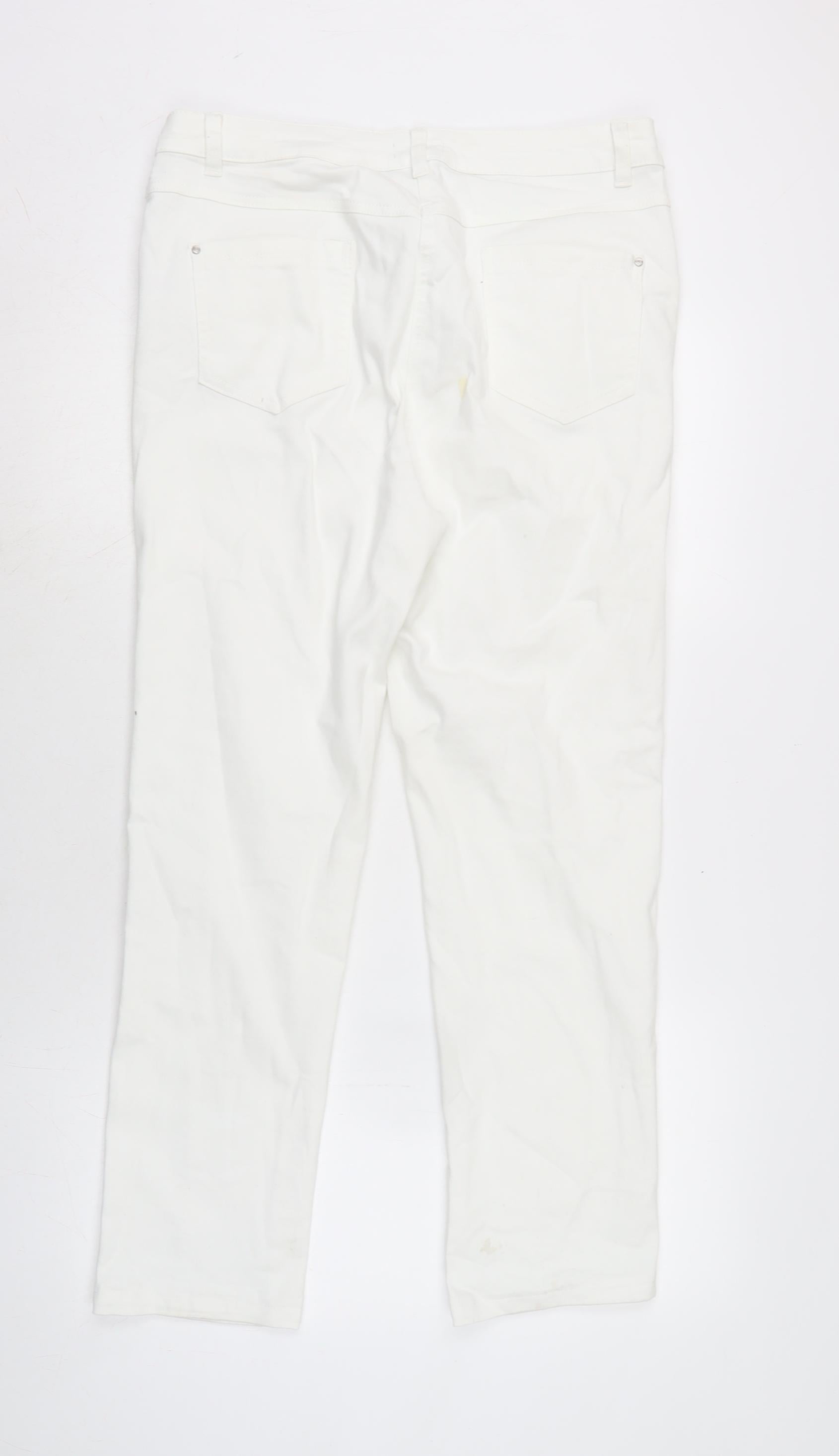 M&Co Womens White Cotton Blend Straight Jeans Size 12 L27.5 in Regular Zip