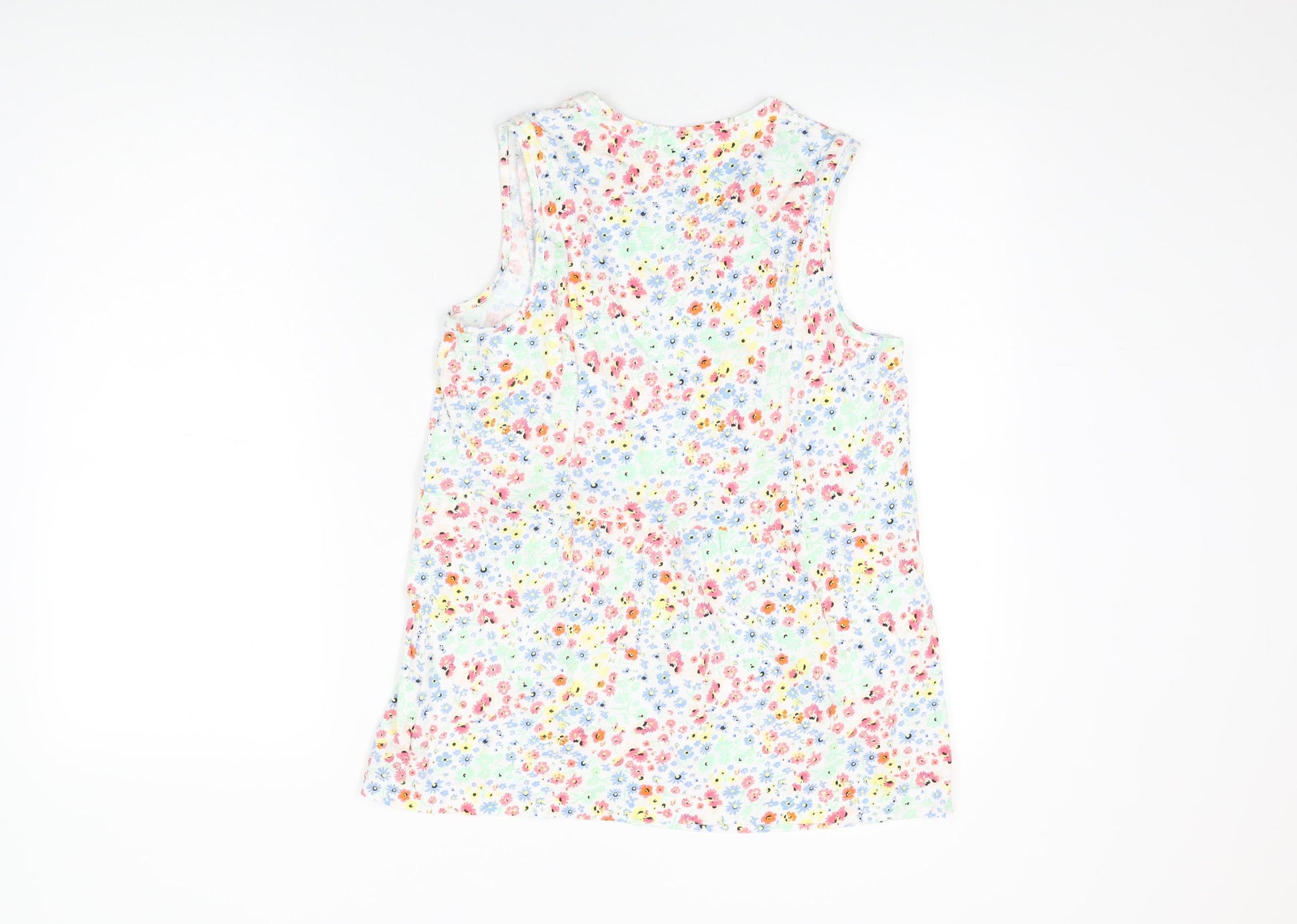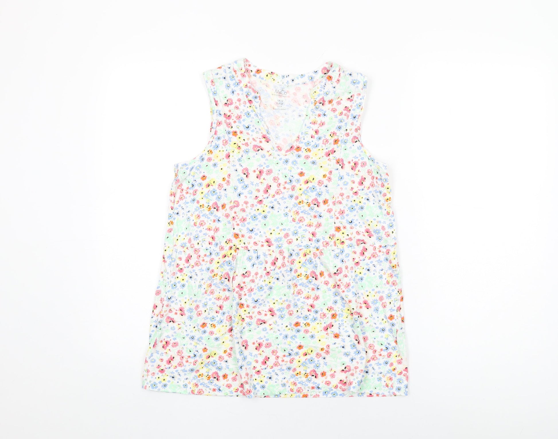 M&Co Womens White Floral Cotton Basic T-Shirt Size 12 V-Neck