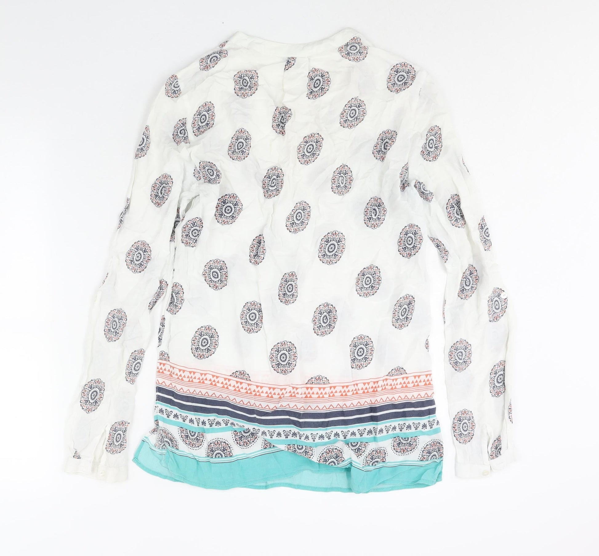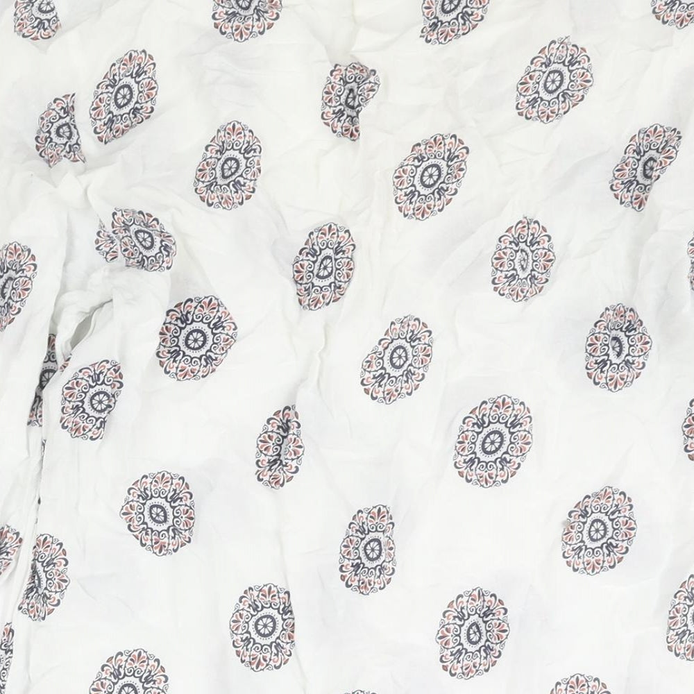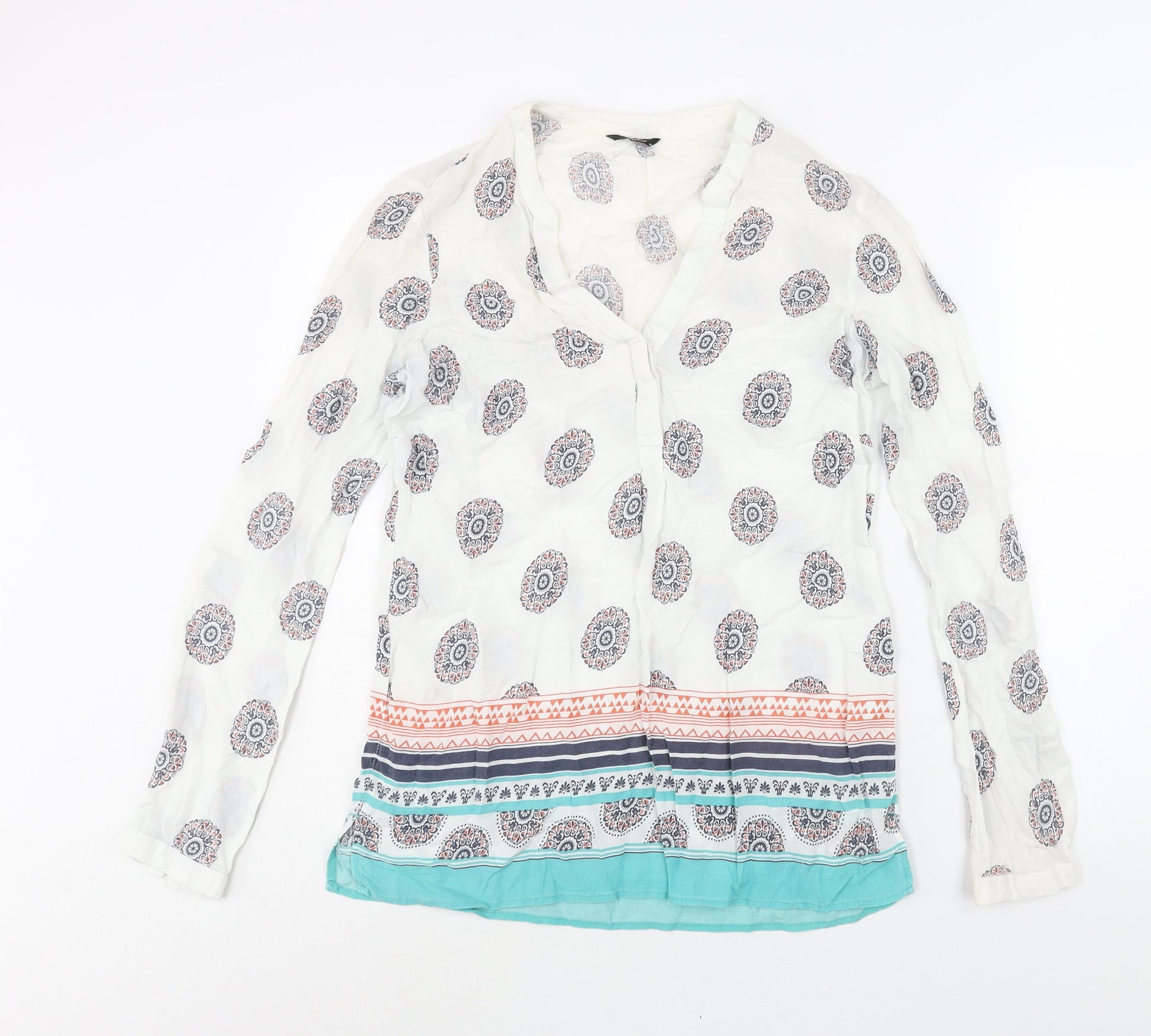 M&Co Womens White Geometric Viscose Basic Blouse Size 10 V-Neck