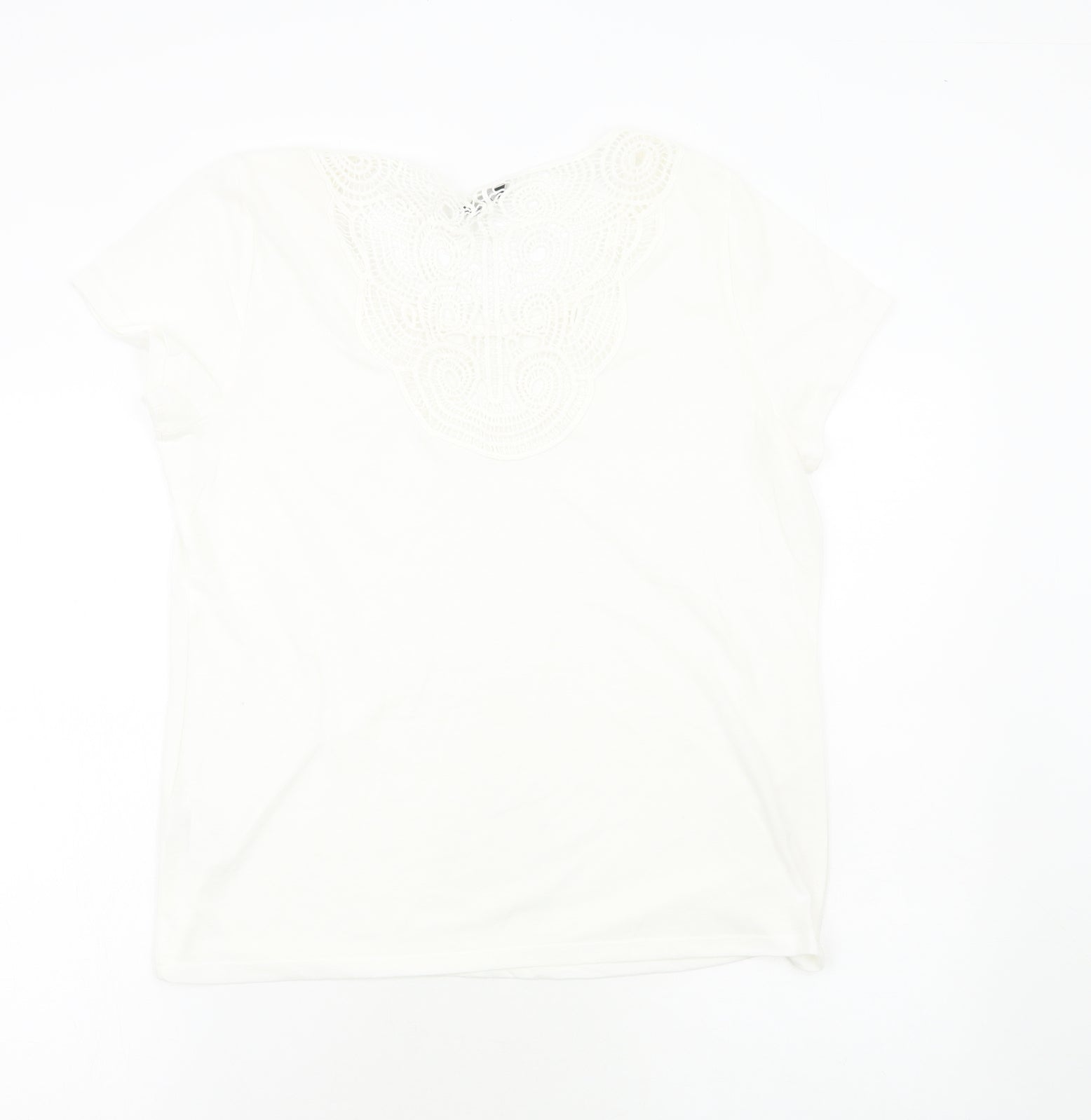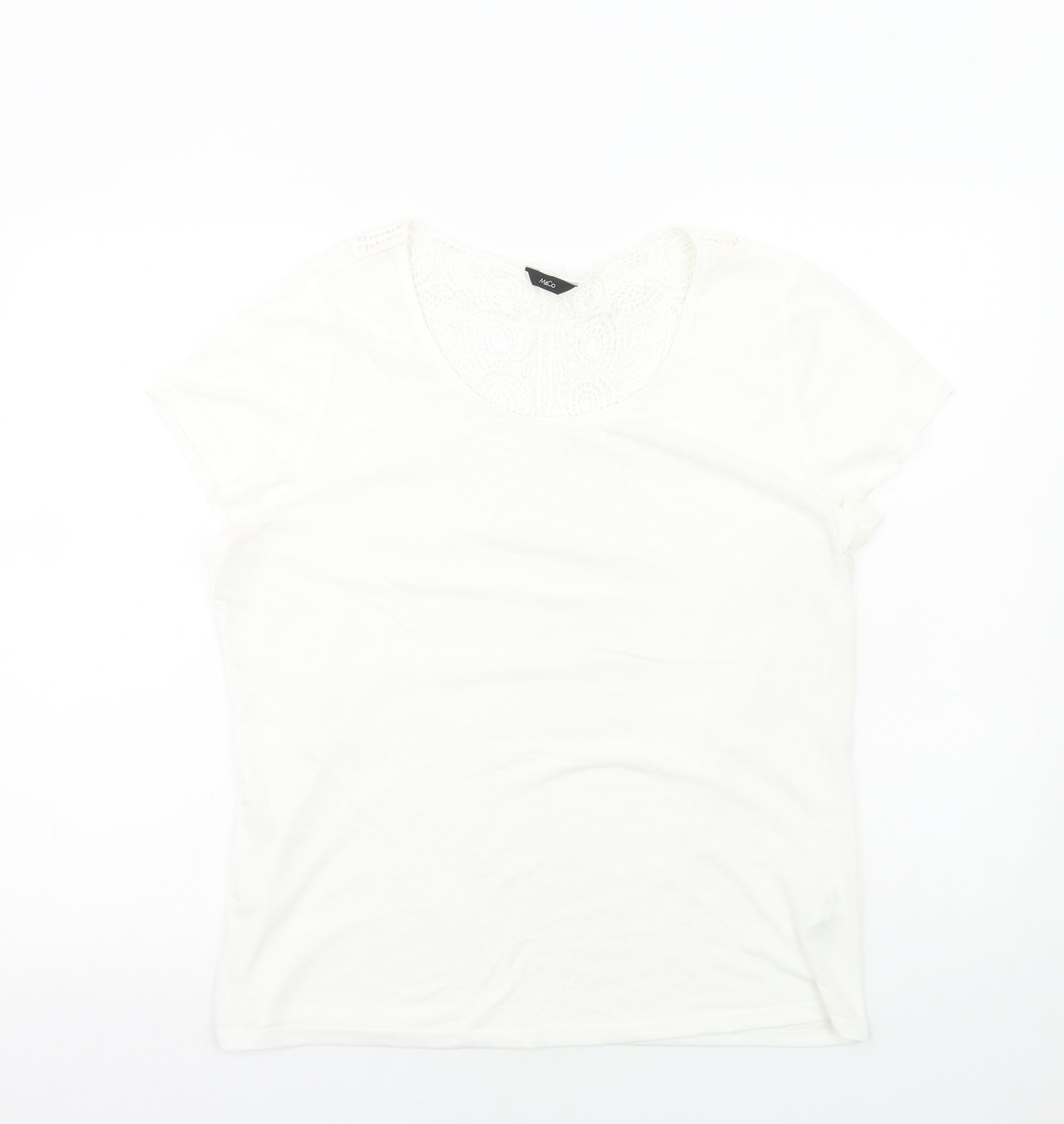 M&Co Womens White Polyester Basic T-Shirt Size 14 Round Neck