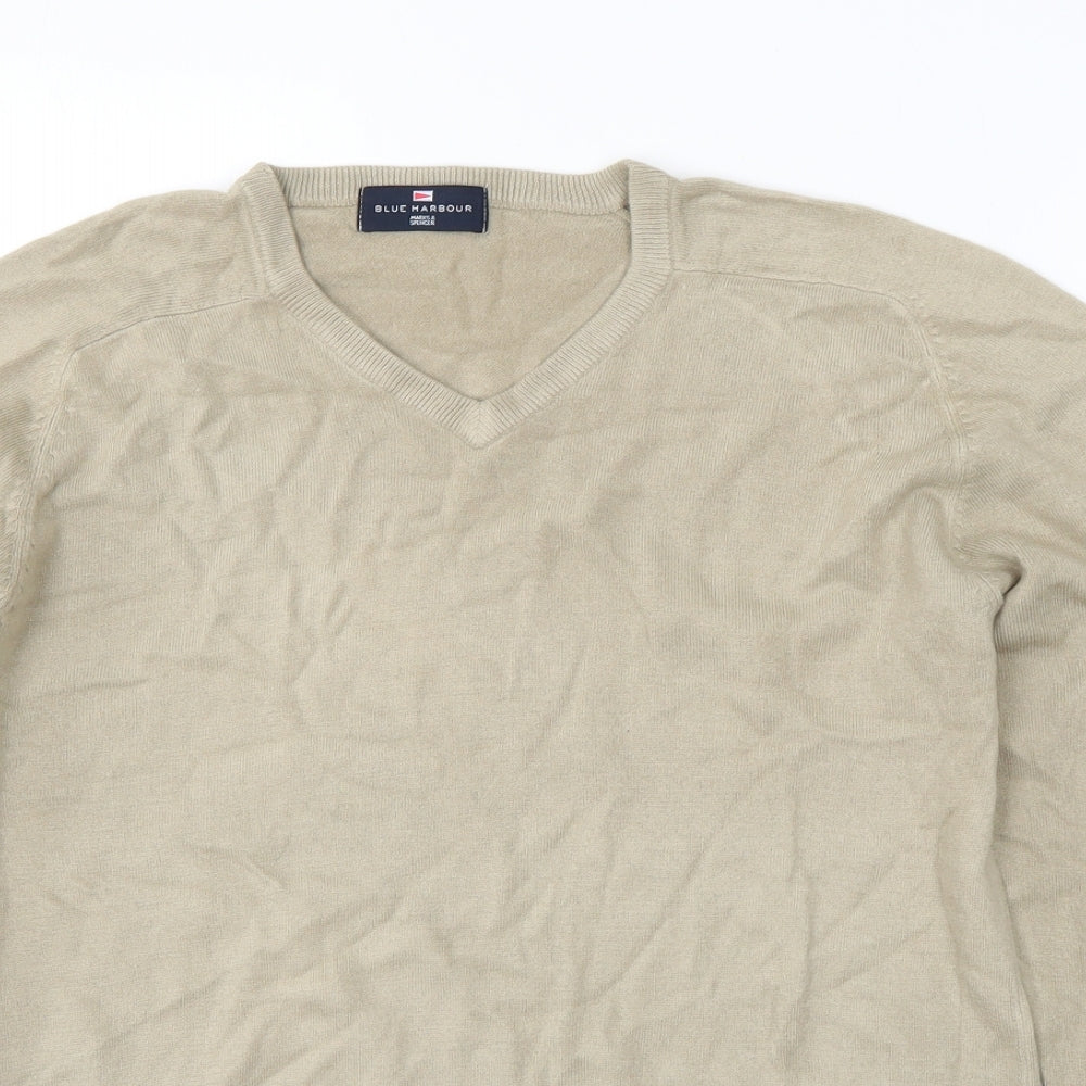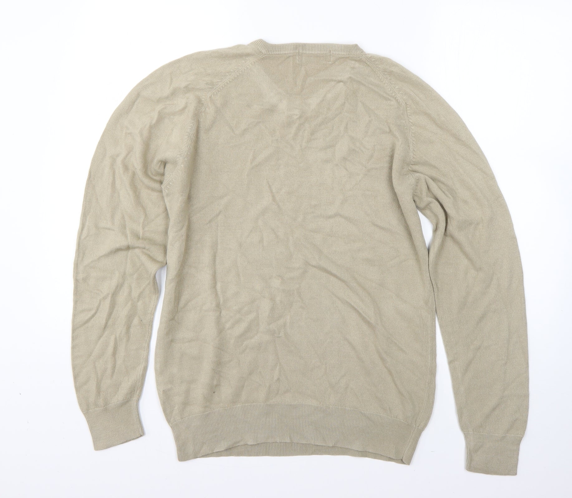M&S Mens Beige V-Neck Acrylic Pullover Jumper Size S