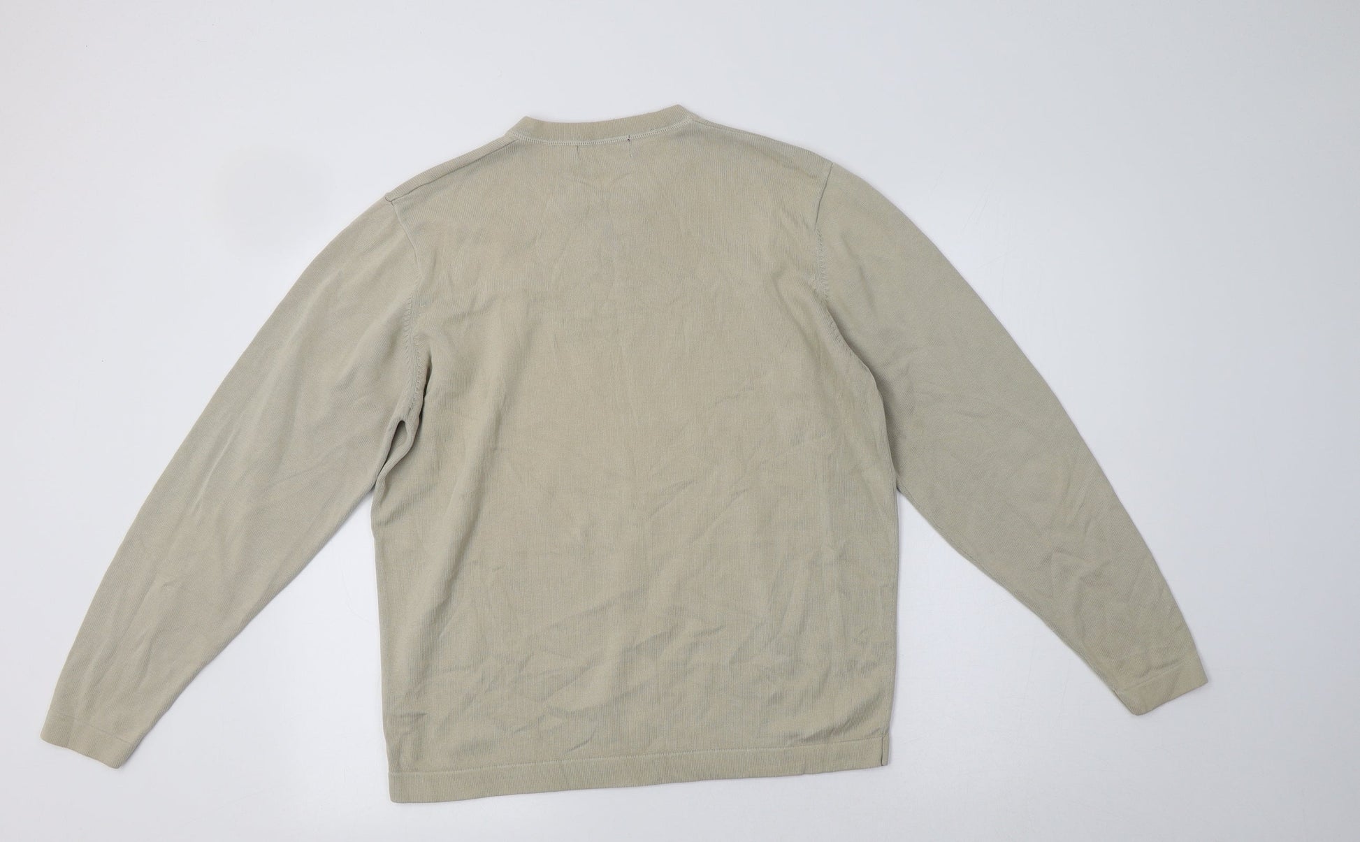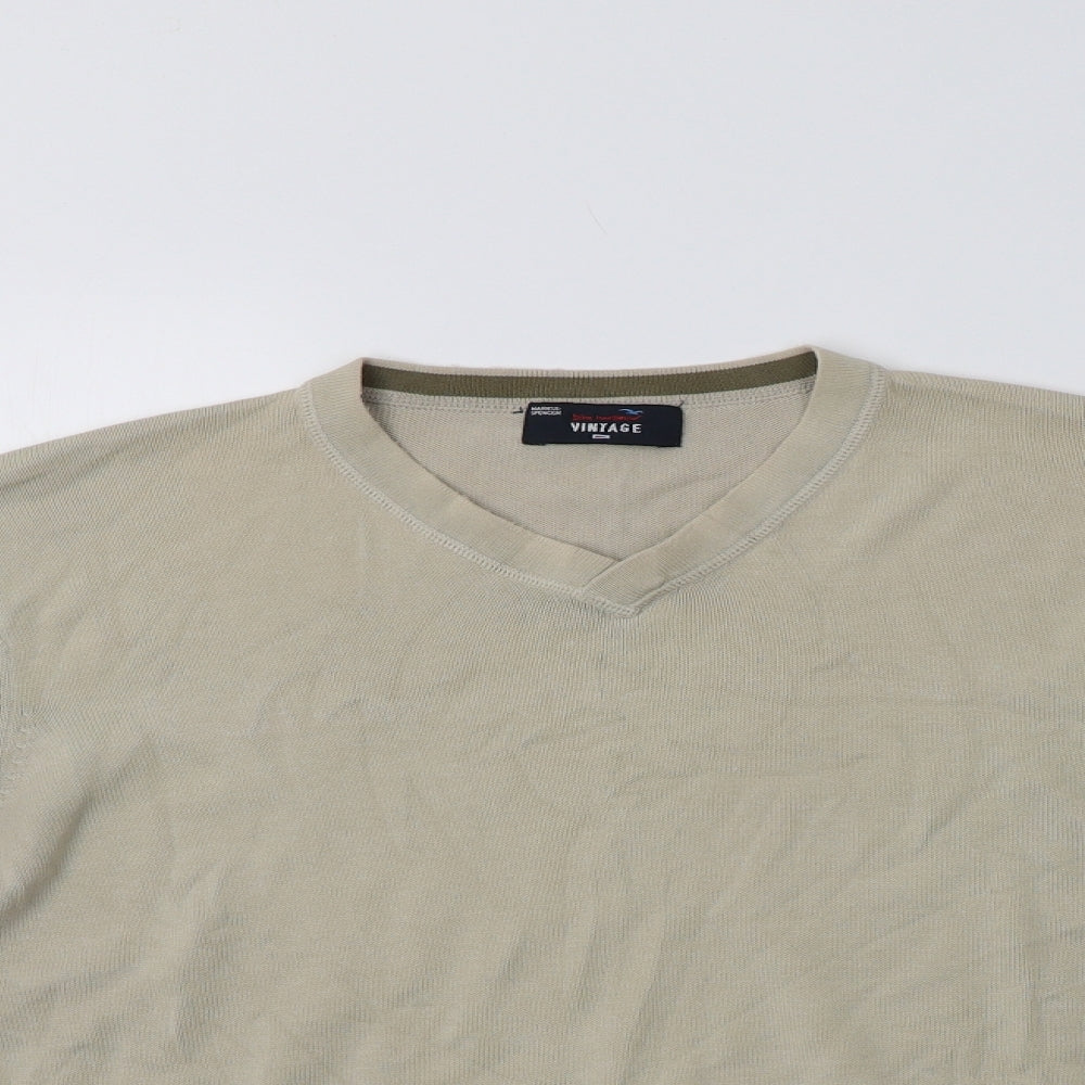 M&S Mens Beige V-Neck Cotton Pullover Jumper Size M