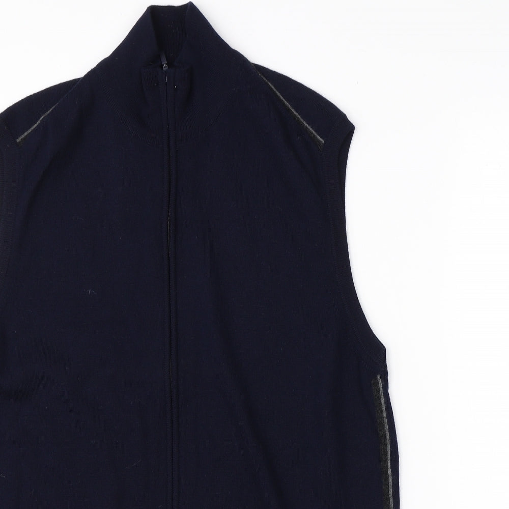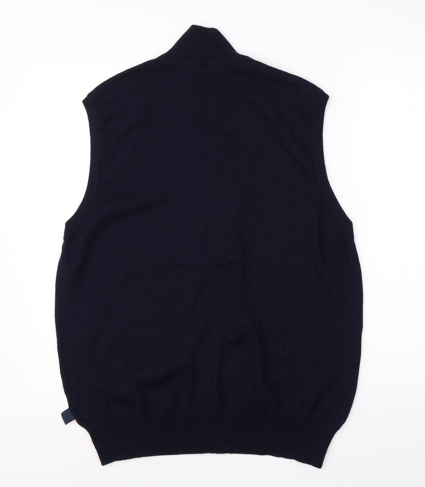 M&S Mens Blue High Neck Acrylic Vest Jumper Size L