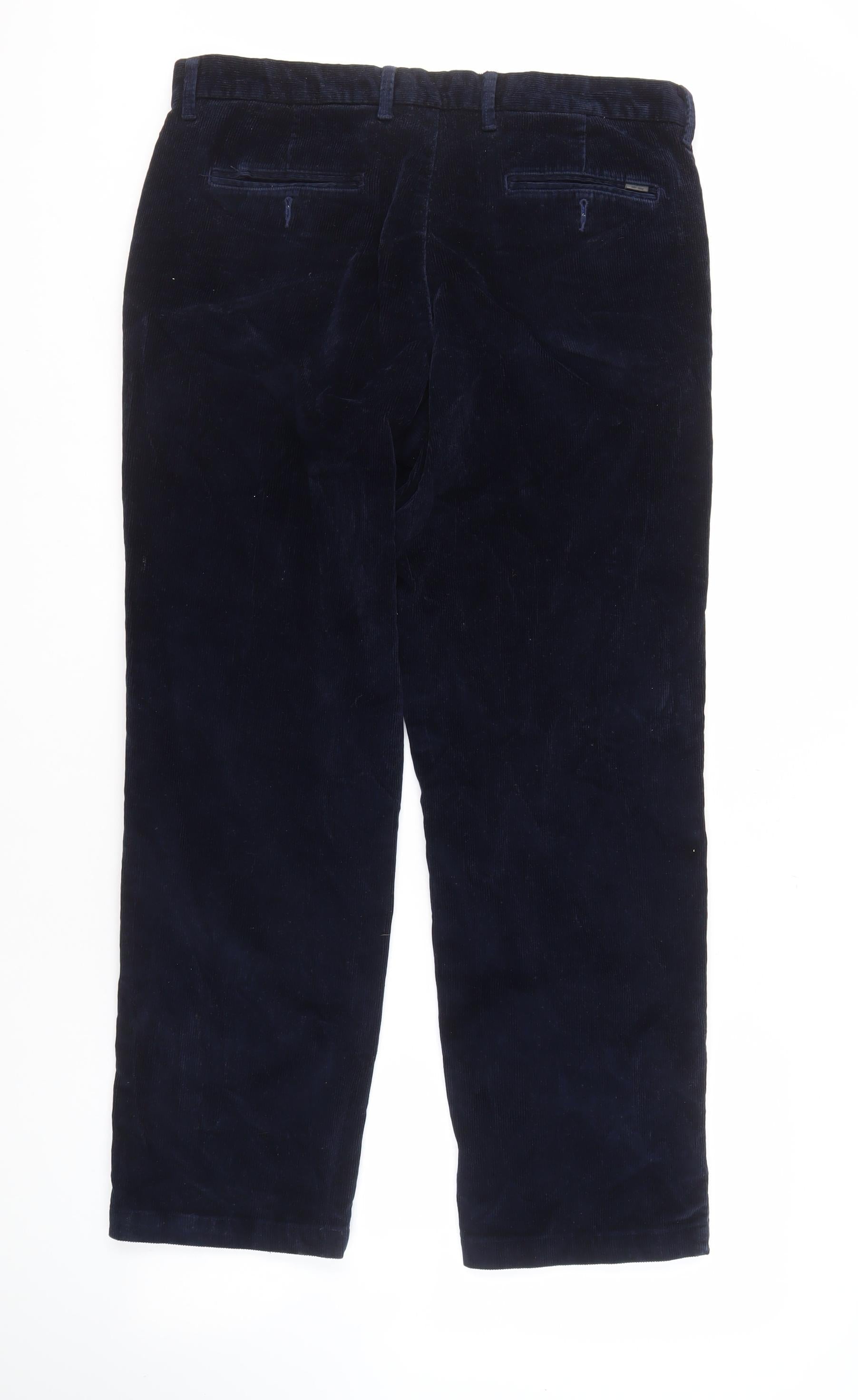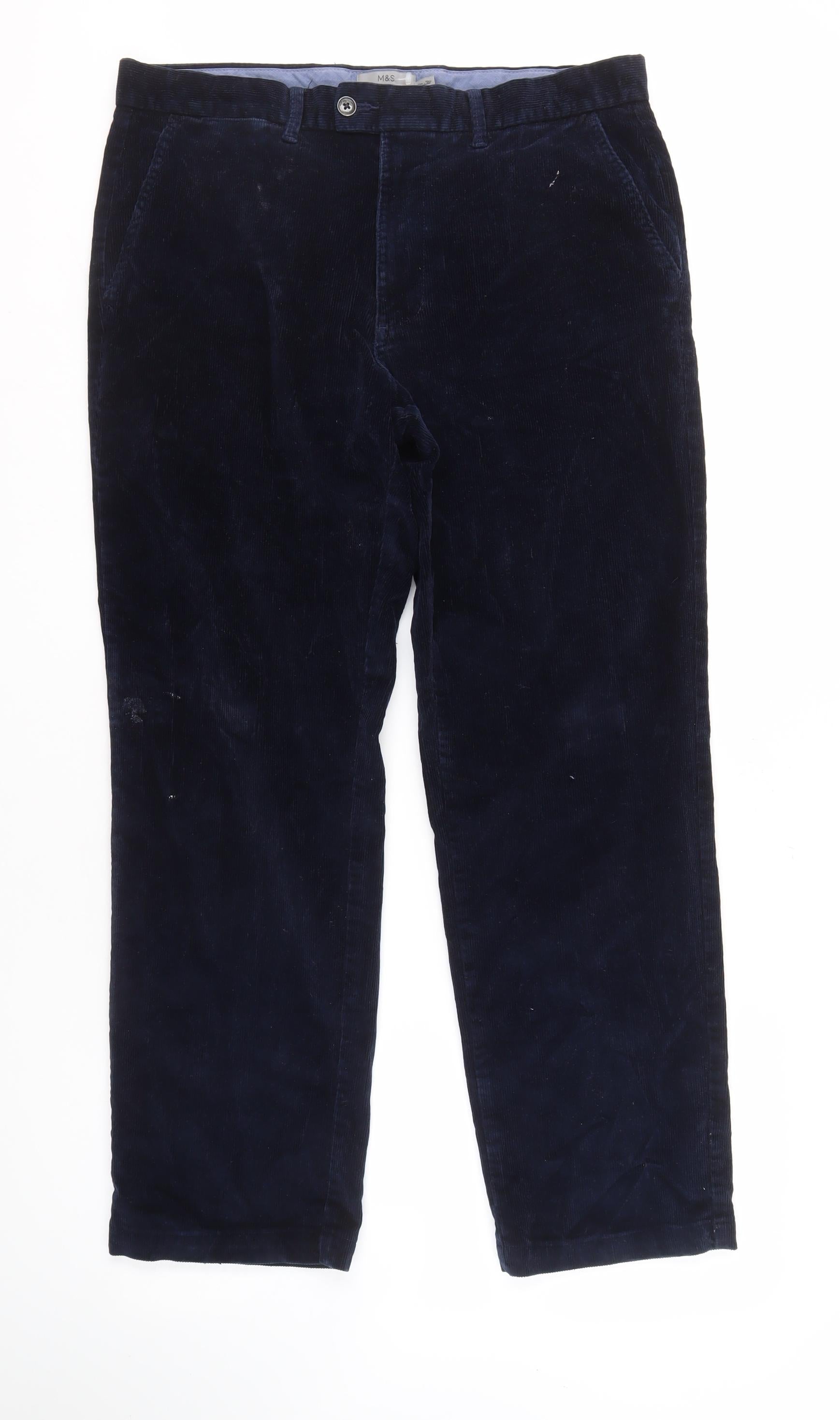 M&S Men's Blue Regular Fit Corduroy Trousers