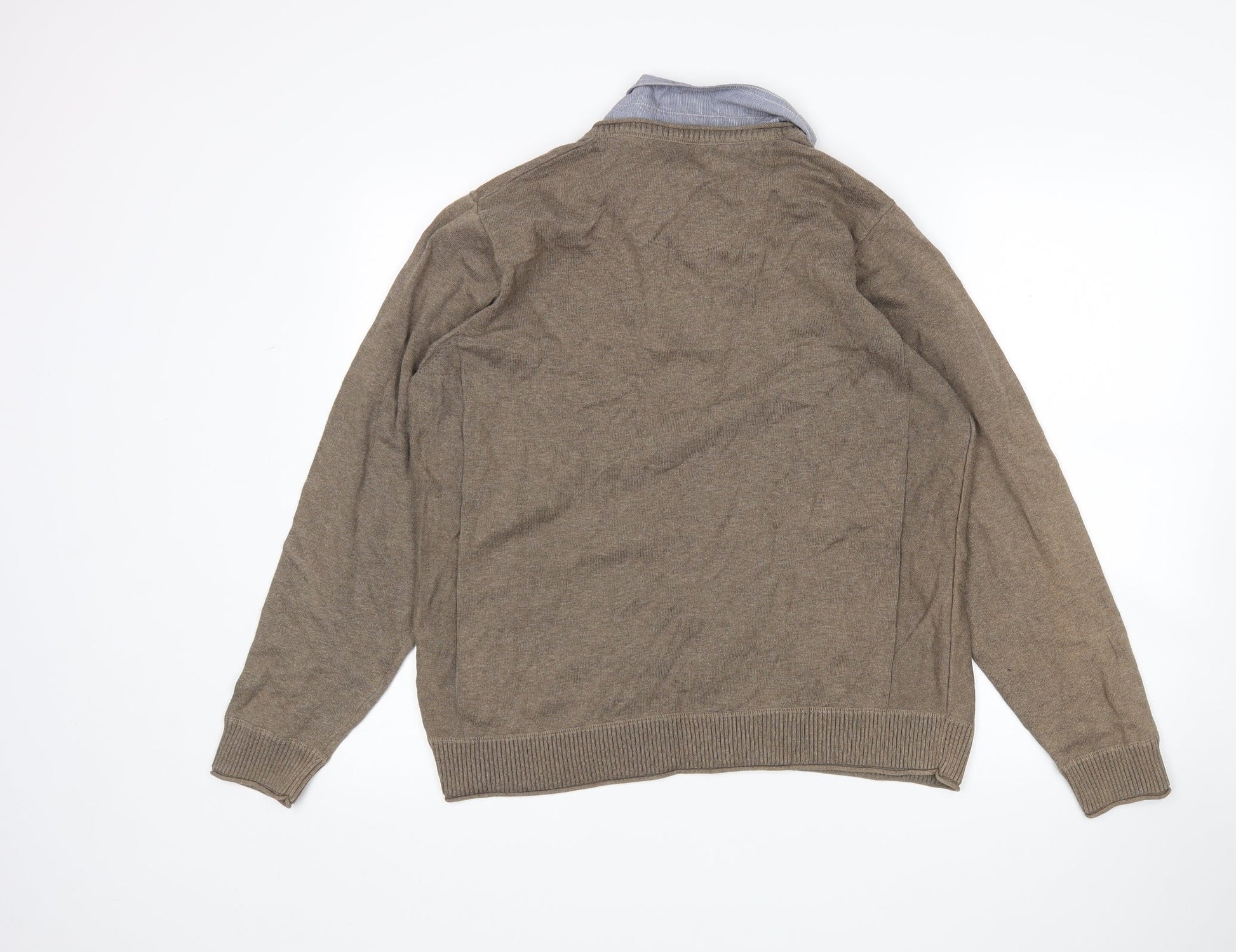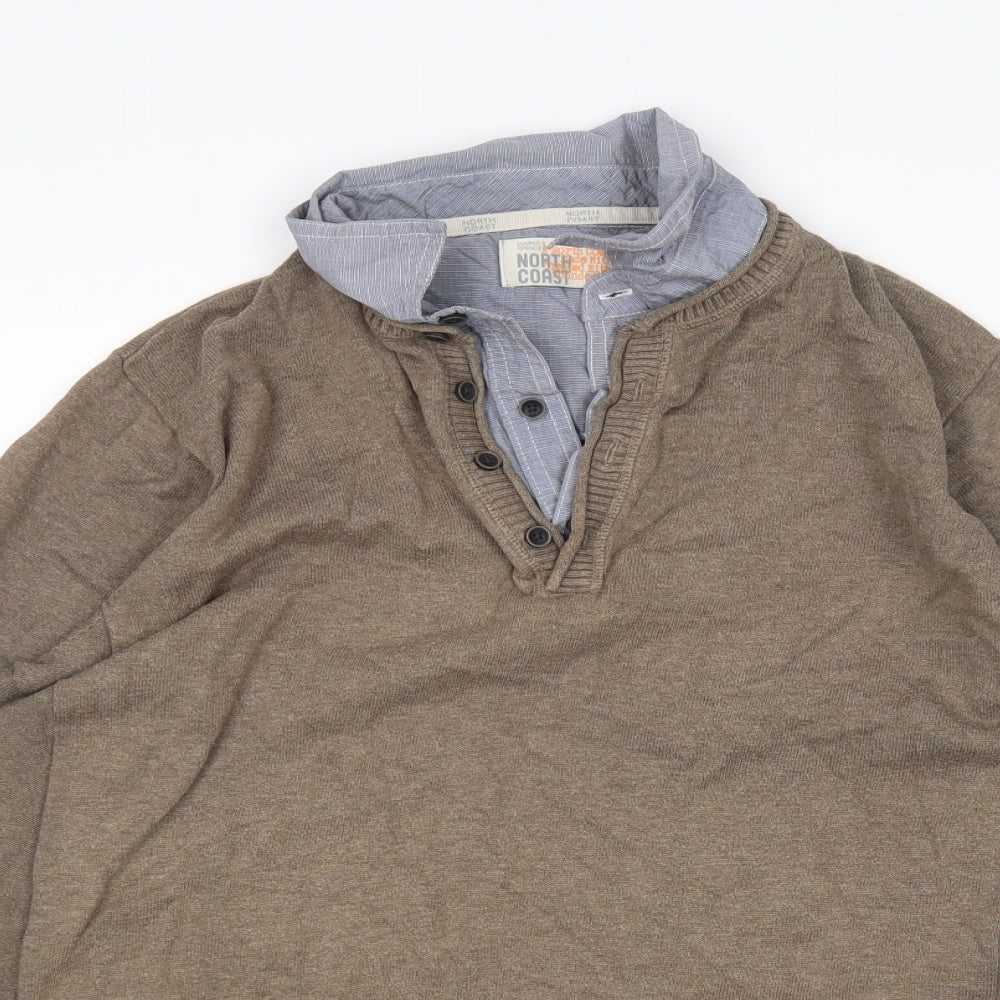 M&S Mens Brown Collared Cotton Pullover Jumper Size L
