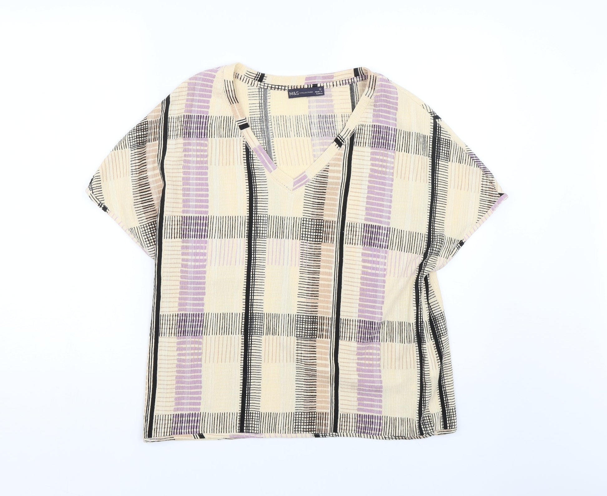 M&S Womens Beige Geometric Basic T-Shirt Size 12
