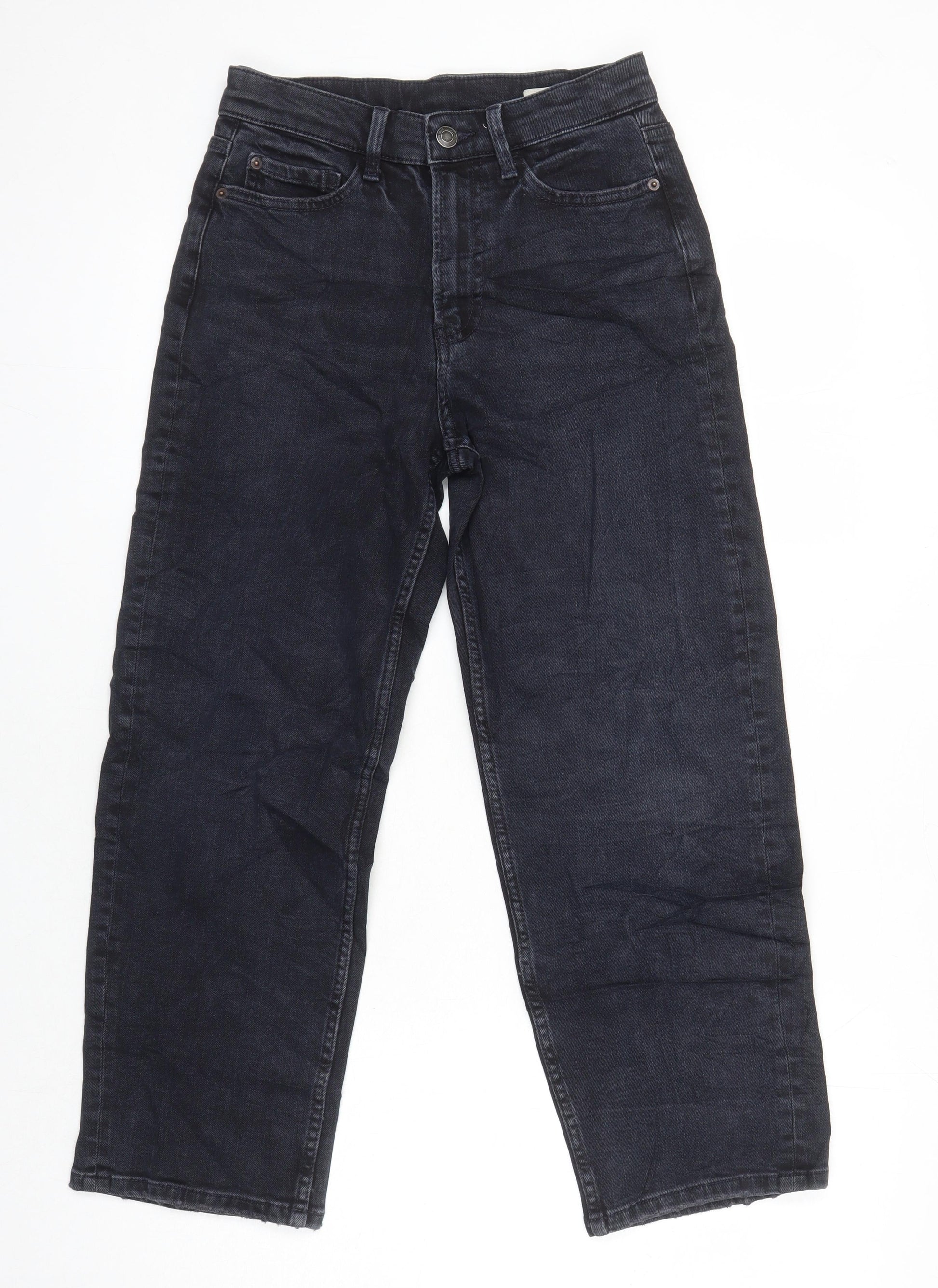 M&S Womens Black Cotton Straight Jeans Size 6 L23 in Regular