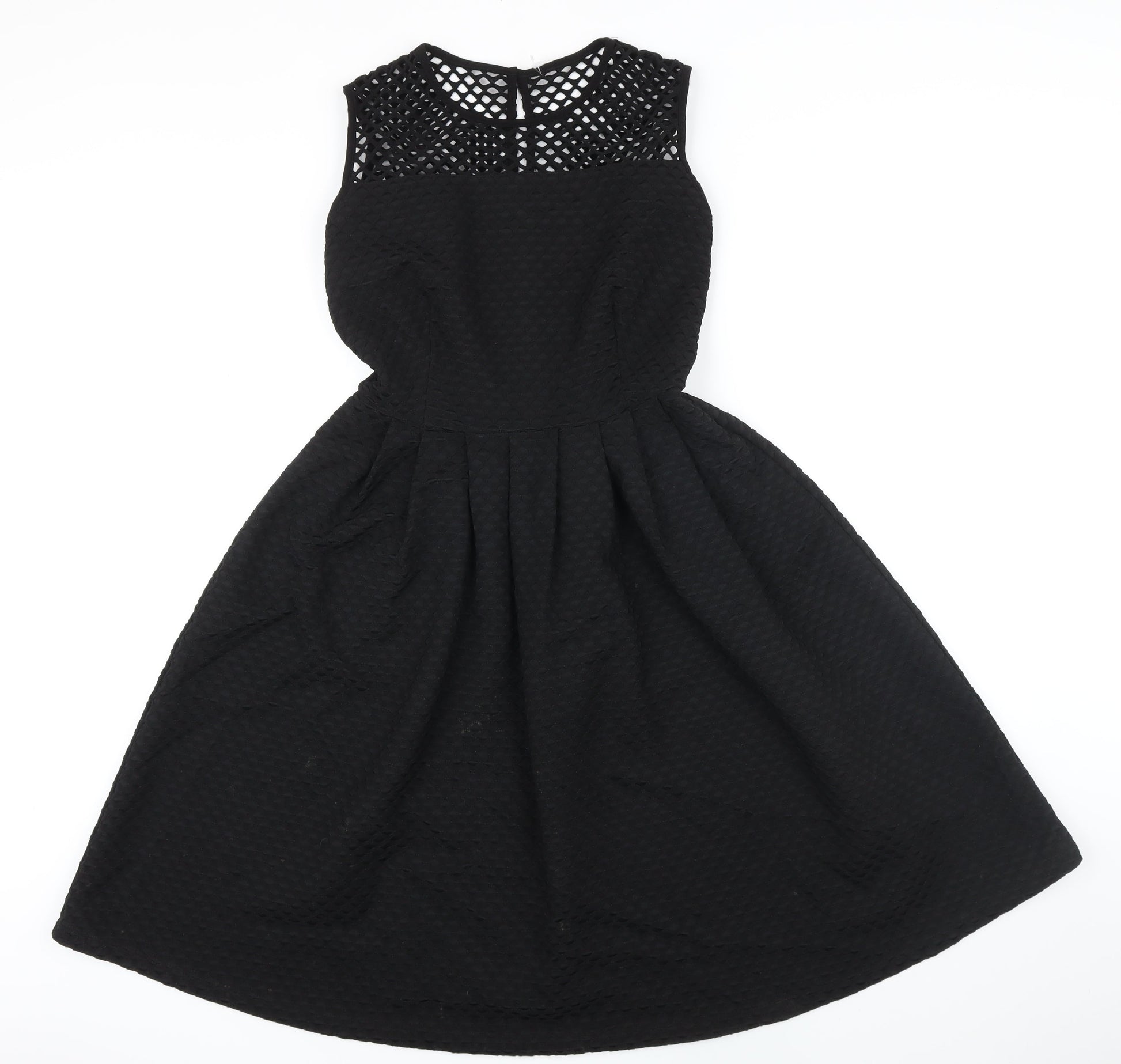 M&S Womens Black Polyester A-Line Size 8 Boat Neck Button