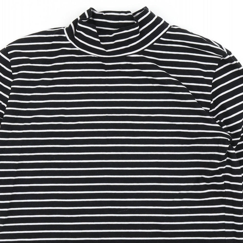 M&S Womens Black Striped Basic T-Shirt Size 10