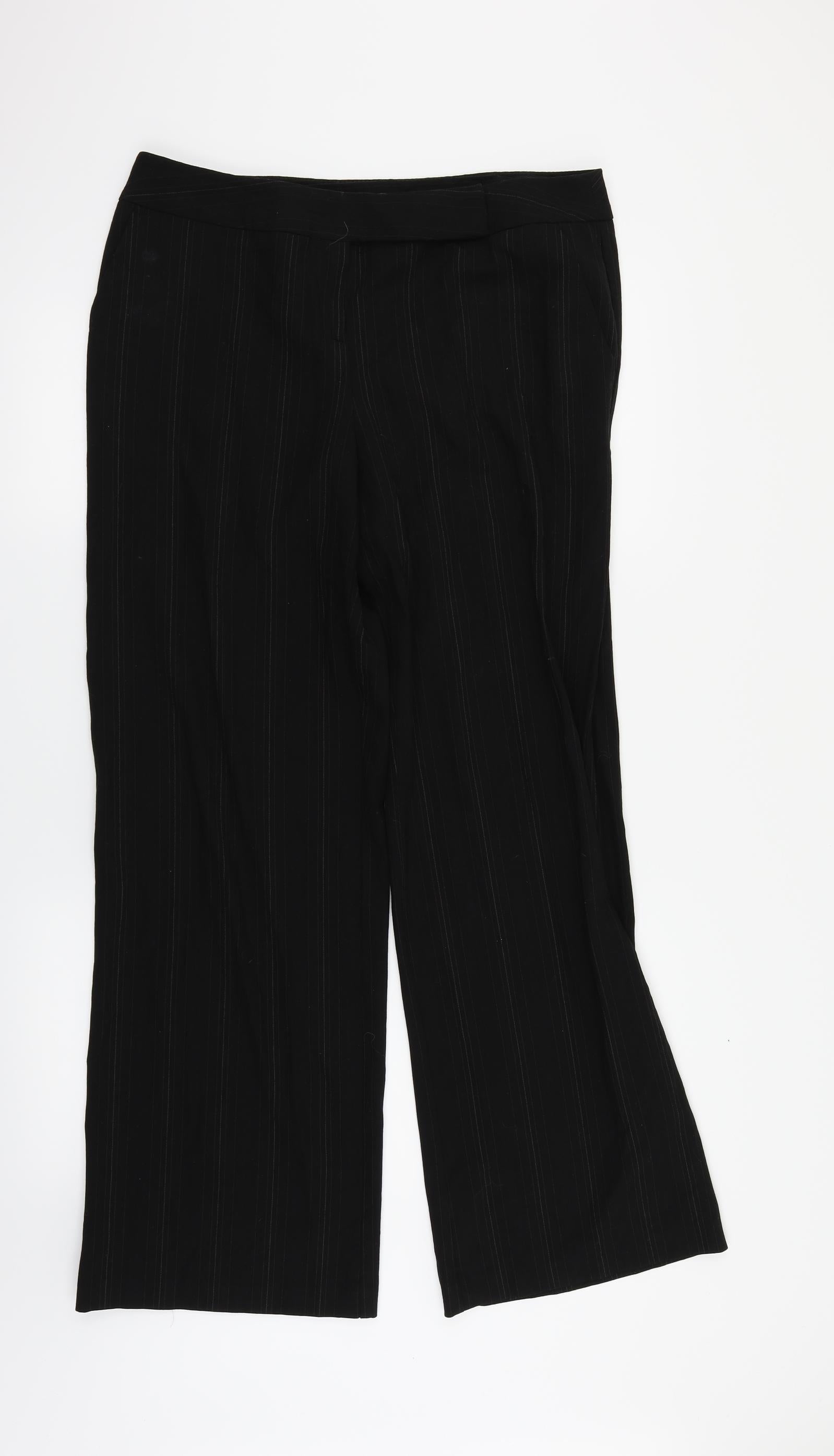 M&S Womens Black Striped Dress Pants Trousers Size 14