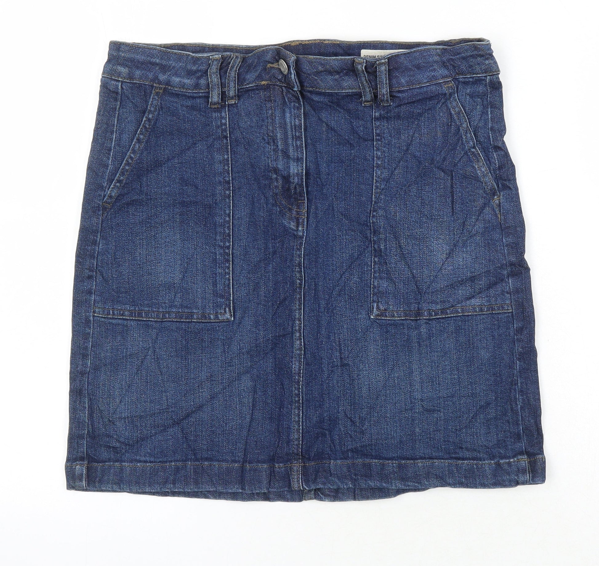 M&S Womens Blue Cotton A-Line Skirt Size 10