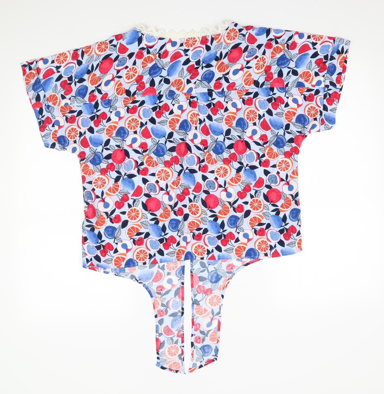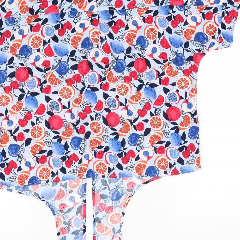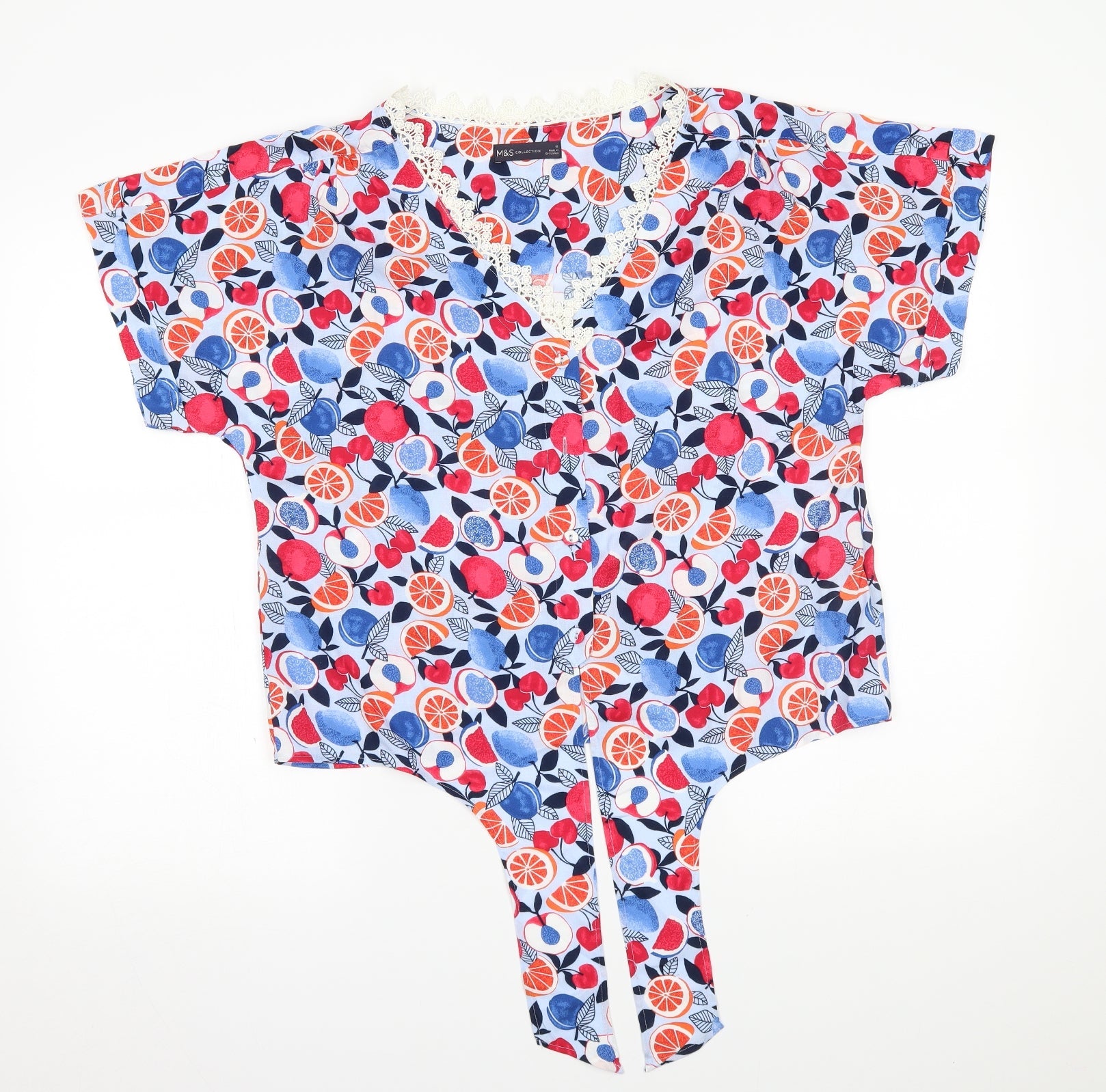 M&S Womens Blue Floral Basic Blouse Size 12 - with ties