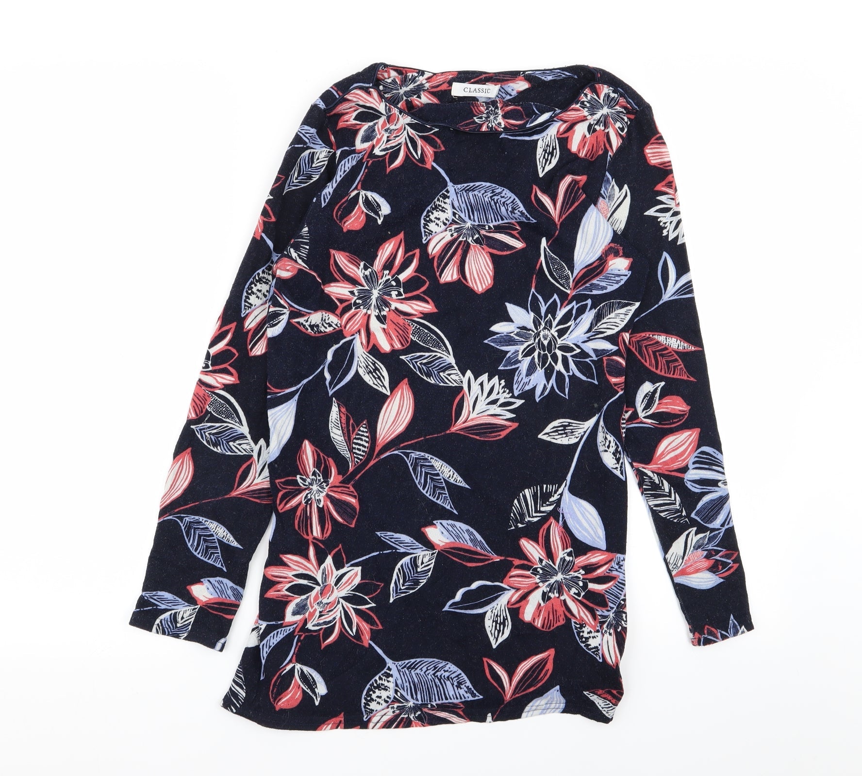 M&S Womens Blue Floral Basic T-Shirt Size 8