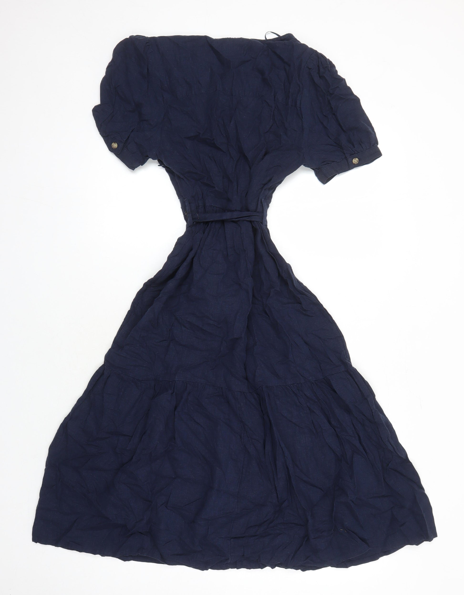 M&S Womens Blue Houndstooth Flax Shirt Dress Size 8 Sweetheart
