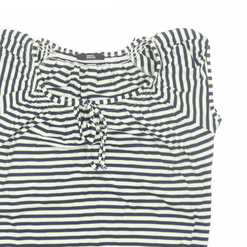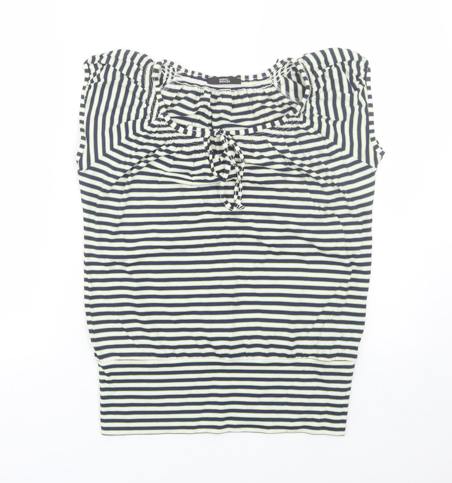 M&S Womens Blue Striped Basic T-Shirt Size 8