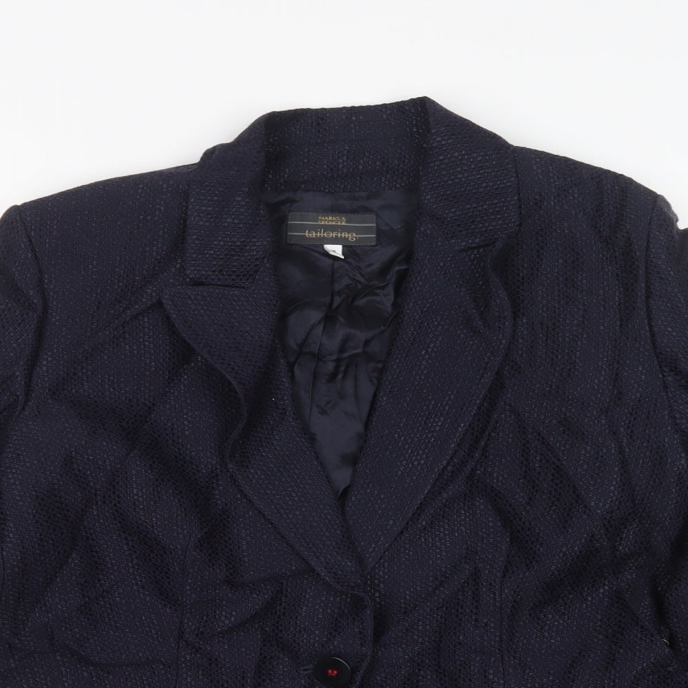 M&S Womens Blue Viscose Jacket Suit Jacket Size 16