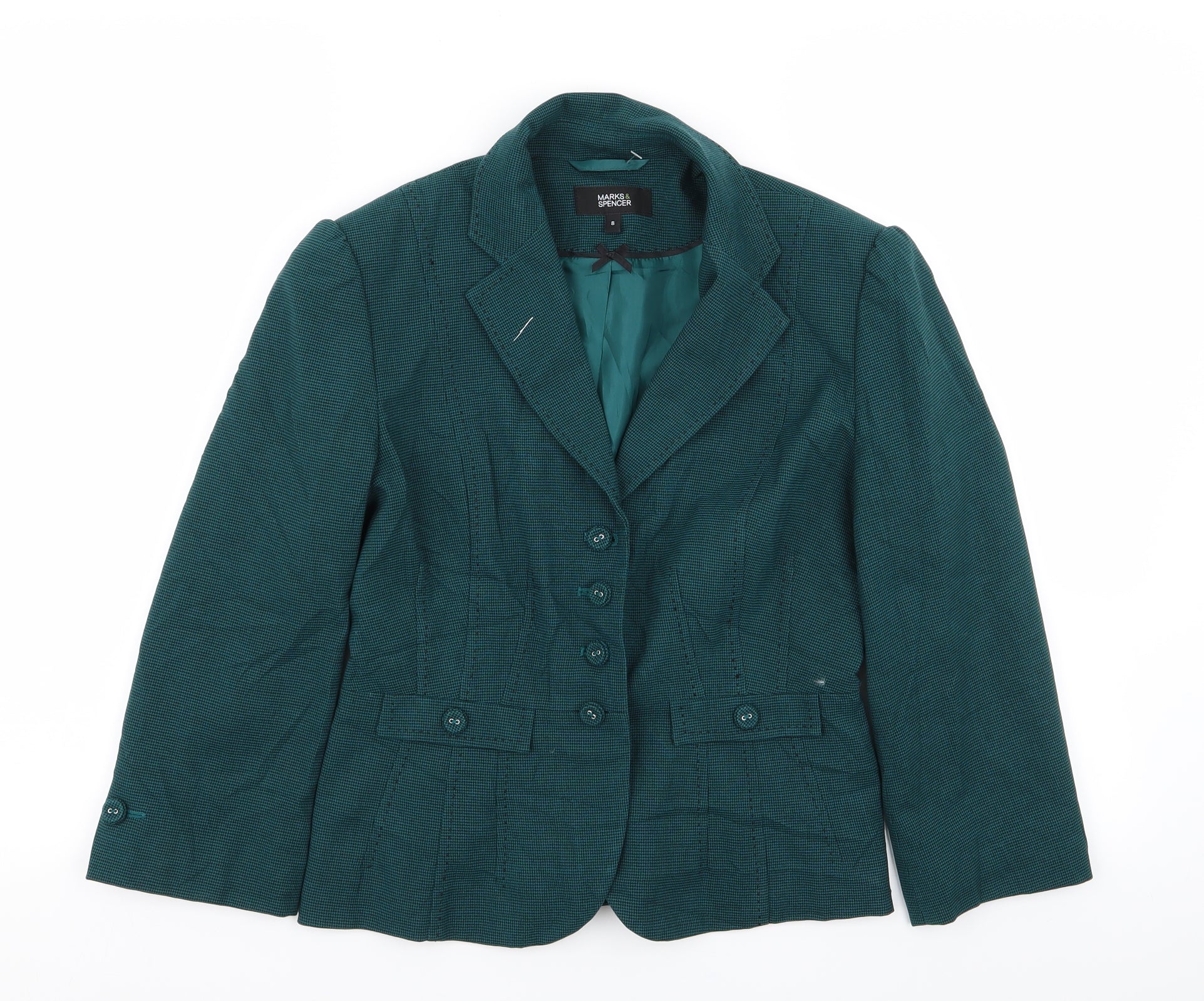 M&S Womens Green Houndstooth Jacket Blazer Size 8