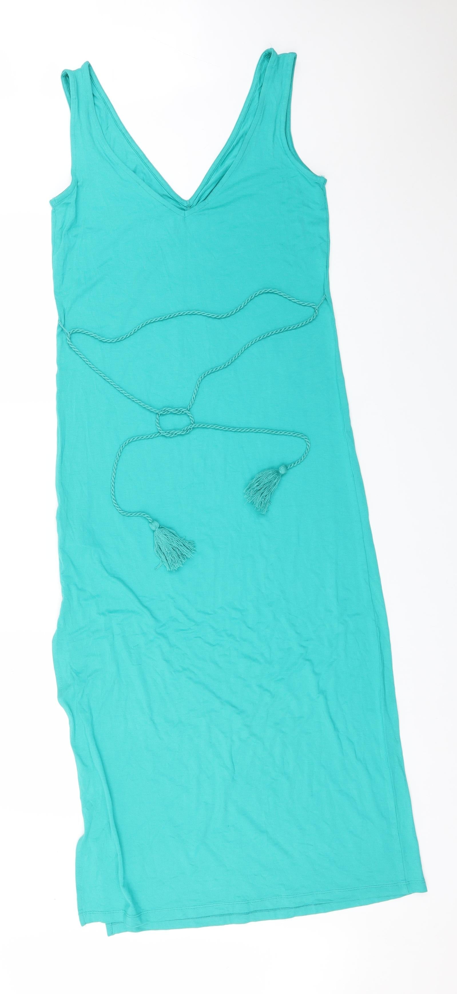 M&S Womens Green Viscose Maxi Size 8 V-Neck