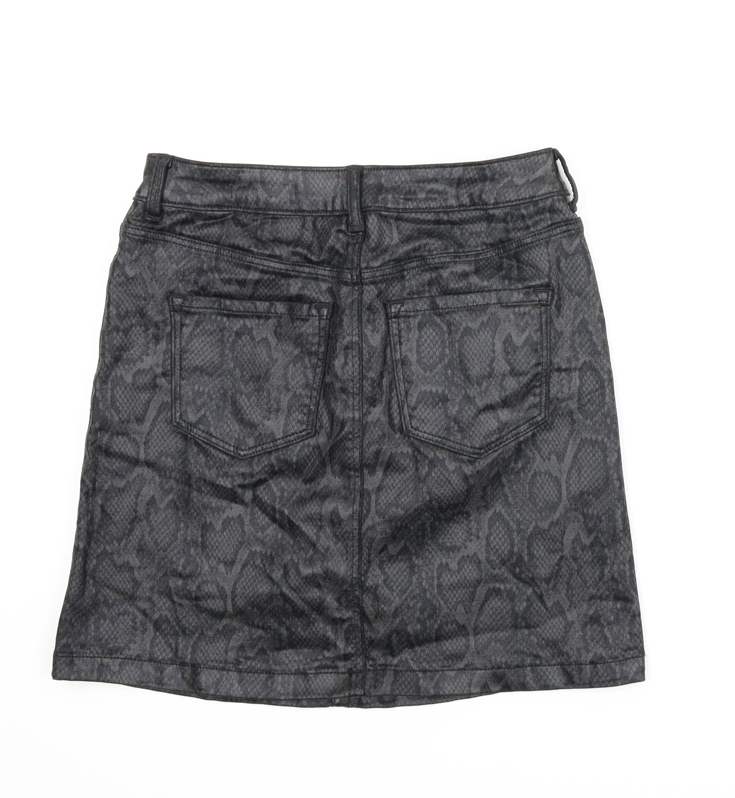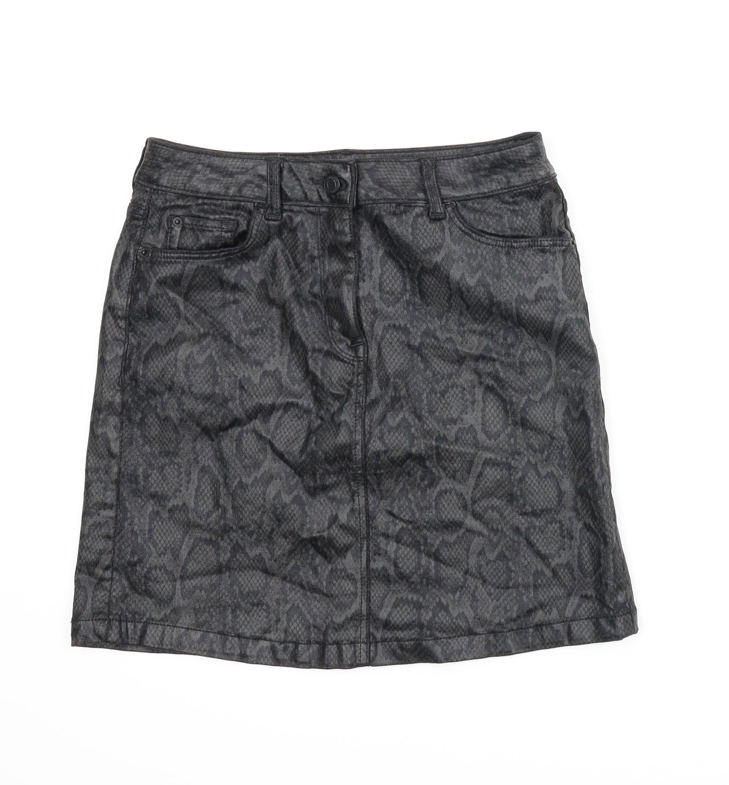 M&S Womens Grey Animal Print A-Line Skirt Size 8 - Snake print
