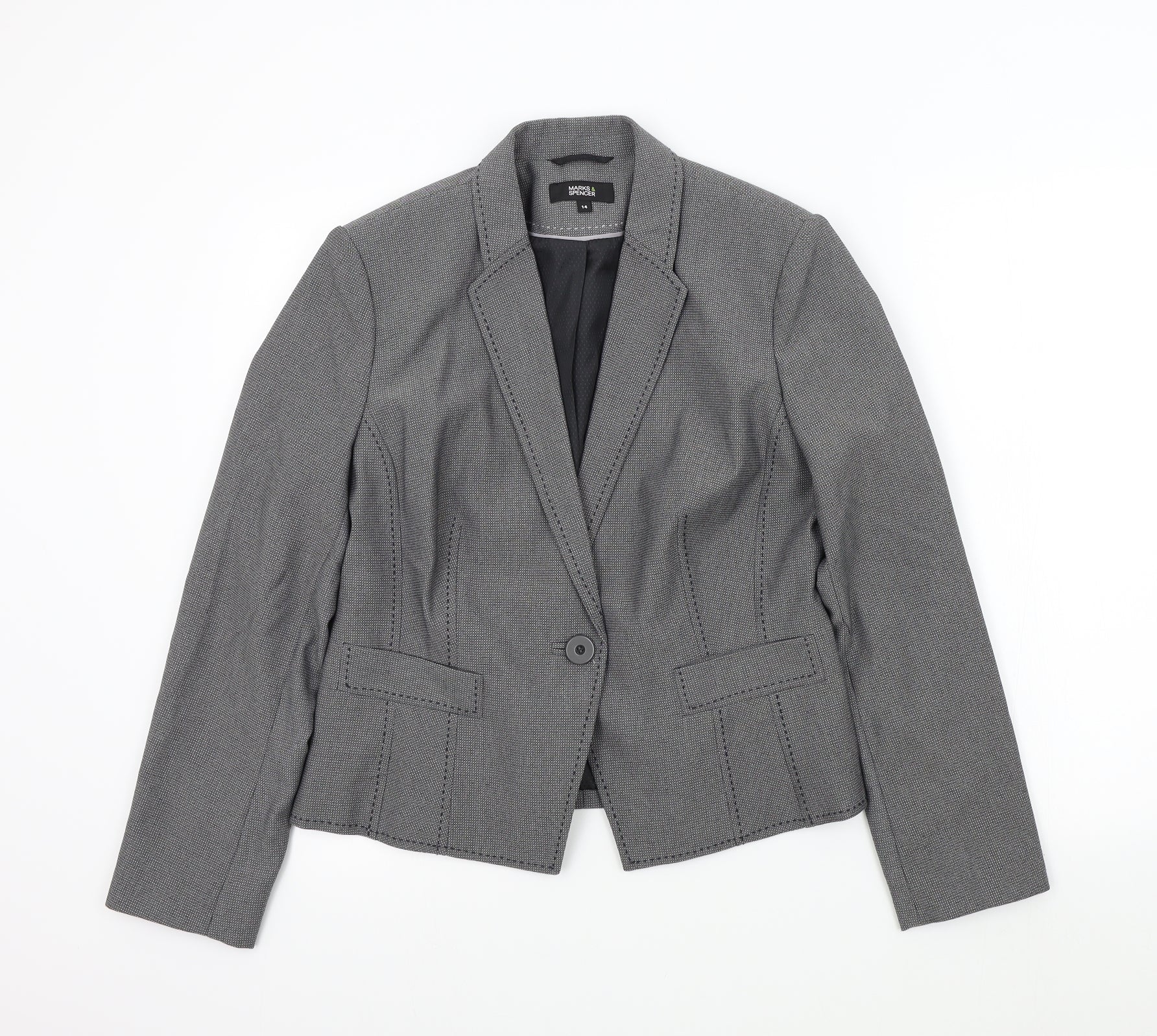 M&S Womens Grey Colourblock Jacket Blazer Size 14