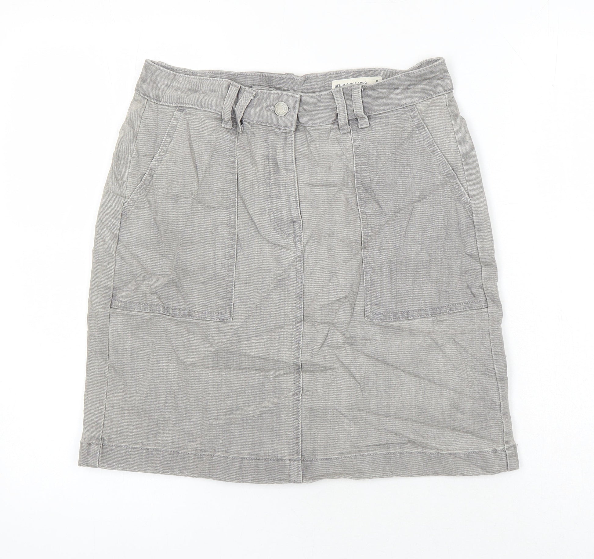 M&S Womens Grey Cotton A-Line Skirt Size 8