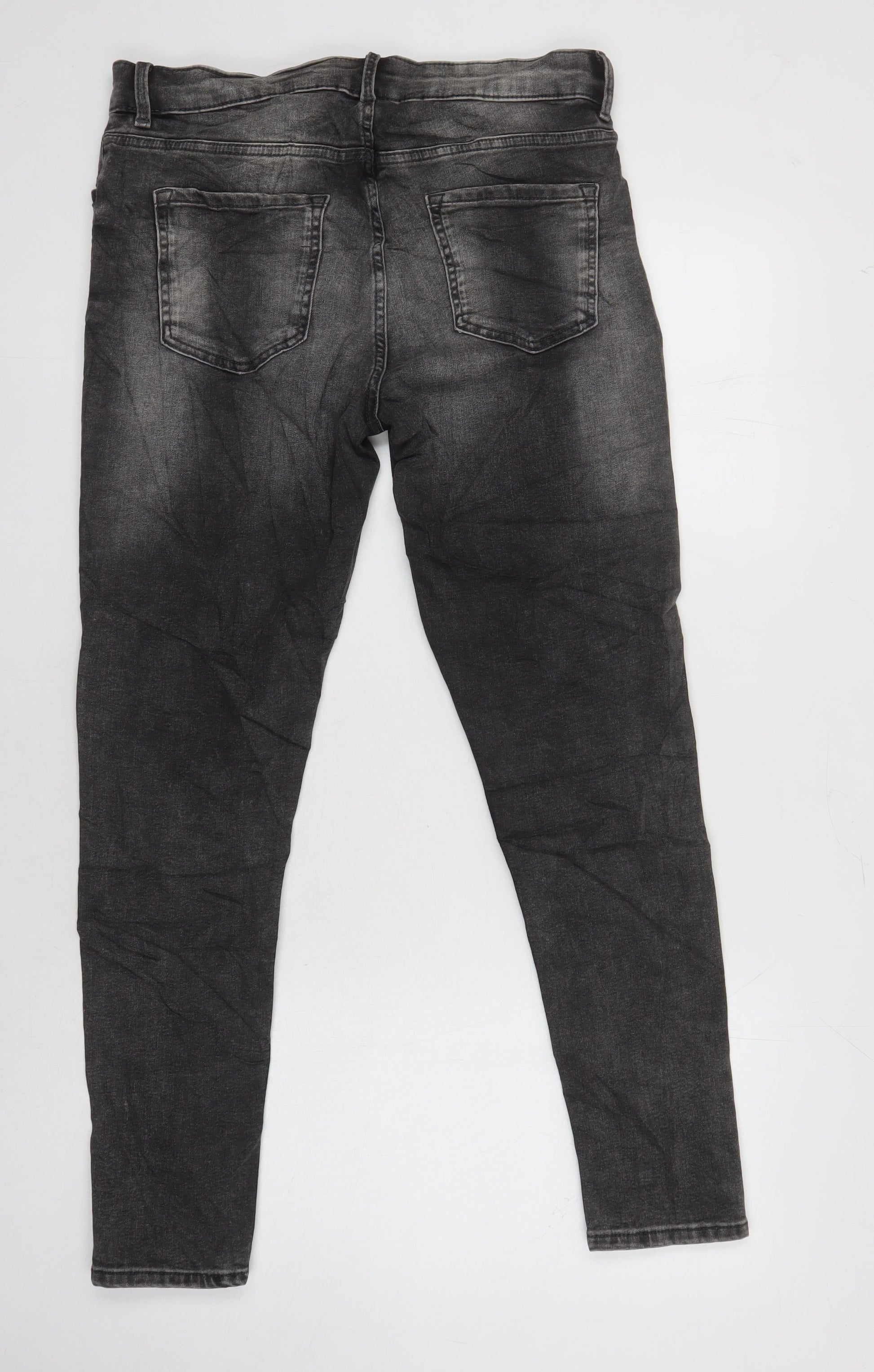M&S Womens Grey Cotton Skinny Jeans Size 12 L27 in Regular