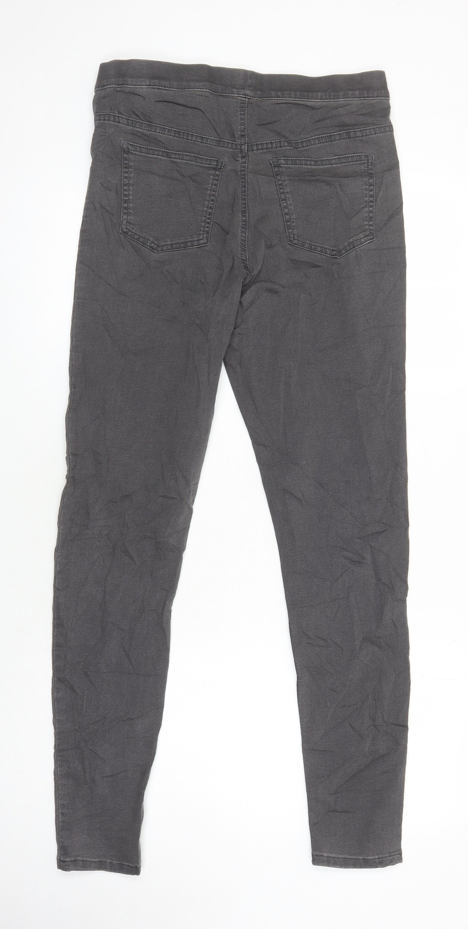 M&S Womens Grey Herringbone Cotton Jegging Jeans Size 12 L28.5 in Regular - Elasticated Waist