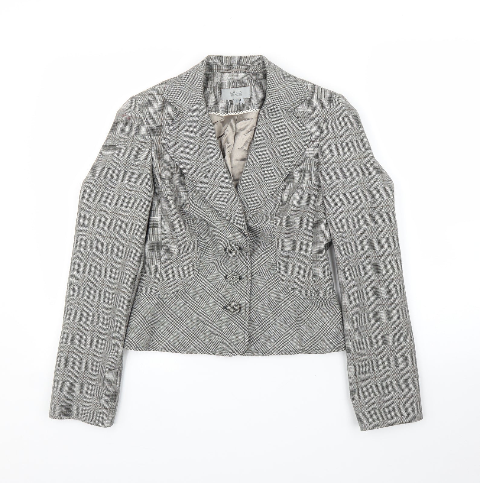 M&S Womens Grey Plaid Jacket Blazer Size 8