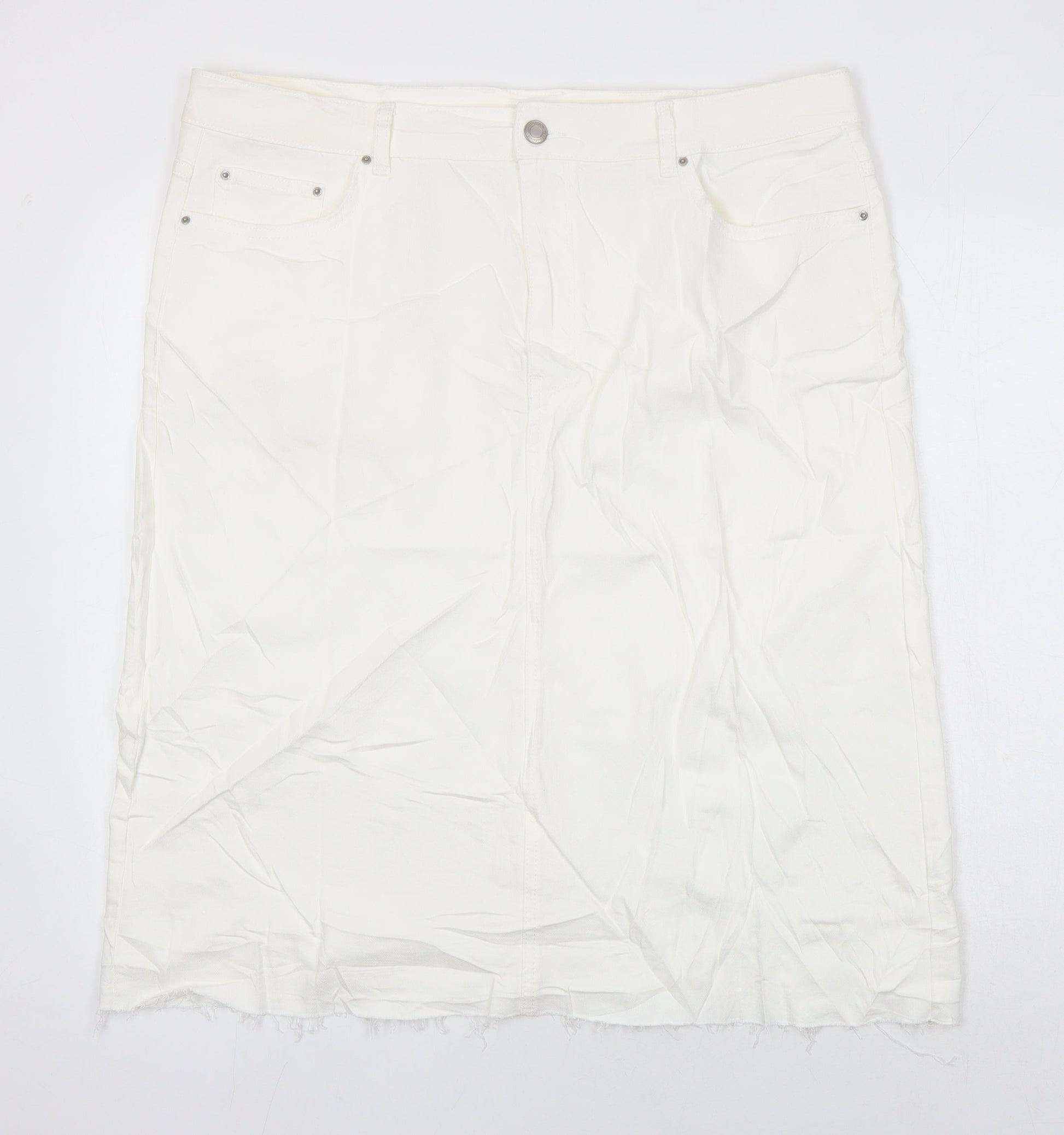 M&S Womens Ivory Cotton A-Line Skirt Size 20 in
