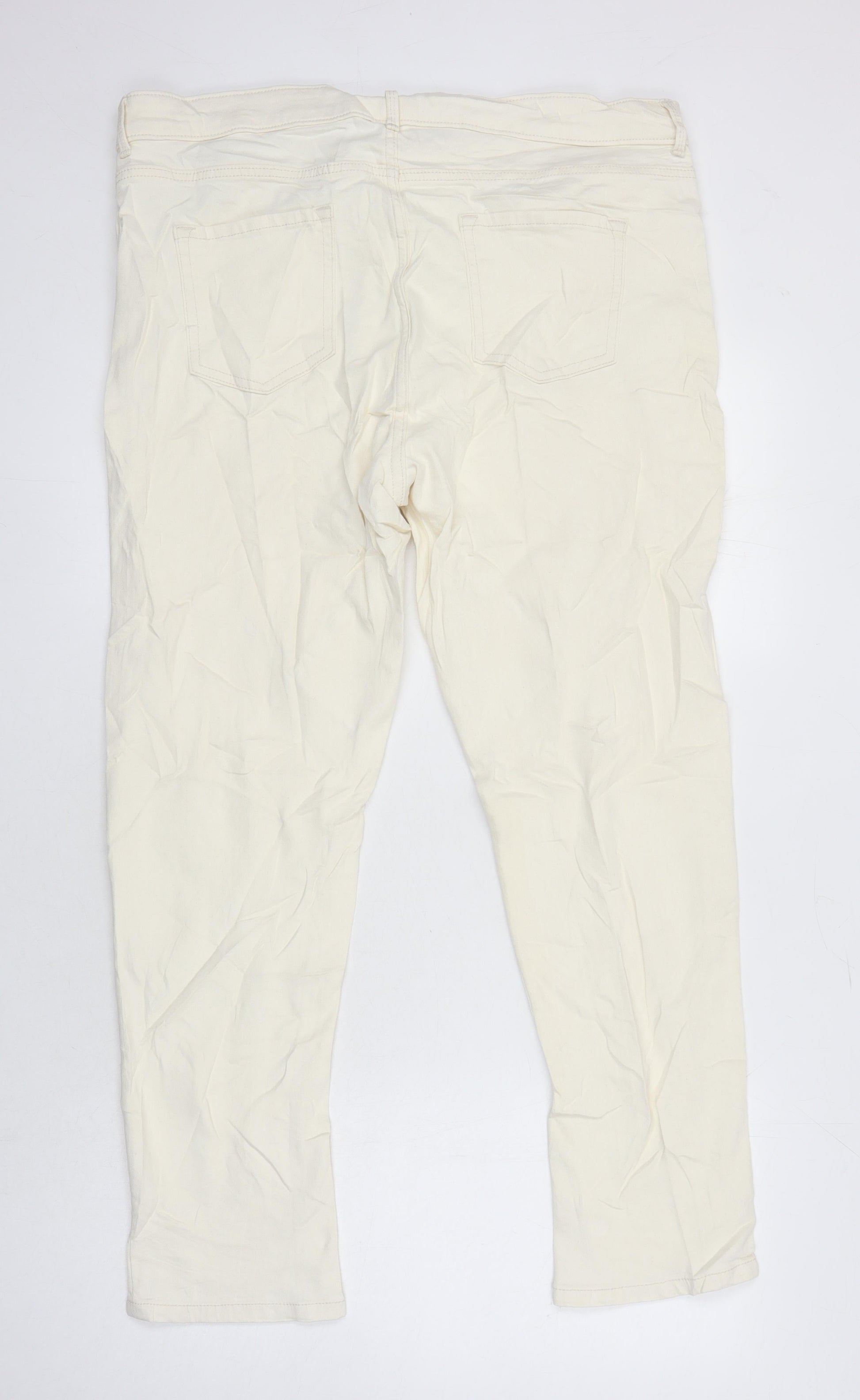M&S Womens Ivory Cotton Straight Jeans Size 18 L27 in Regular