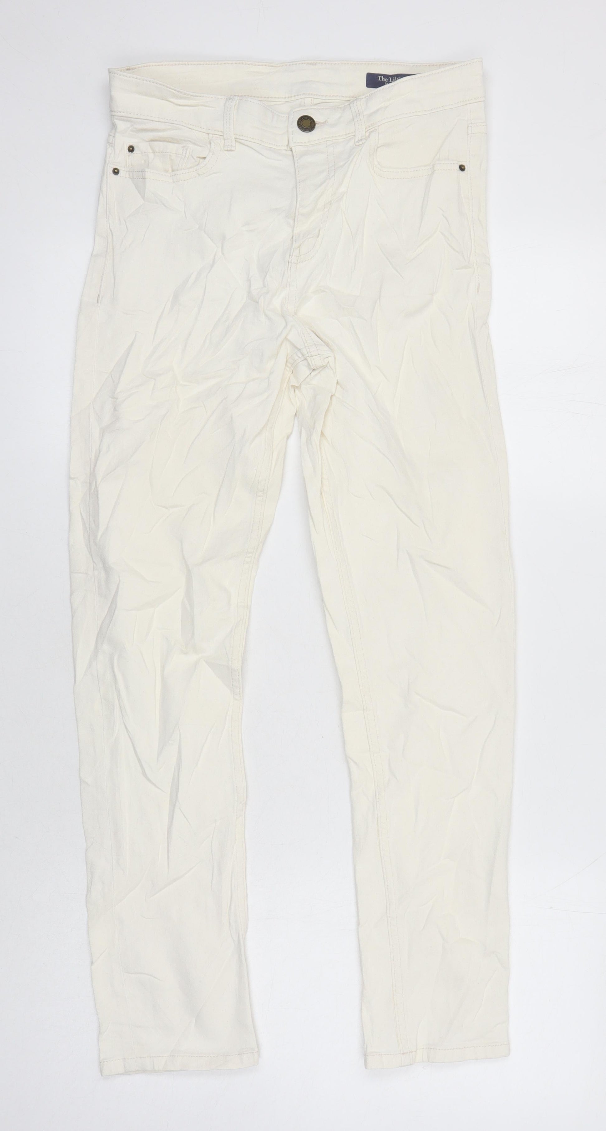 M&S Womens Ivory Cotton Tapered Jeans Size 10 L26 in Regular