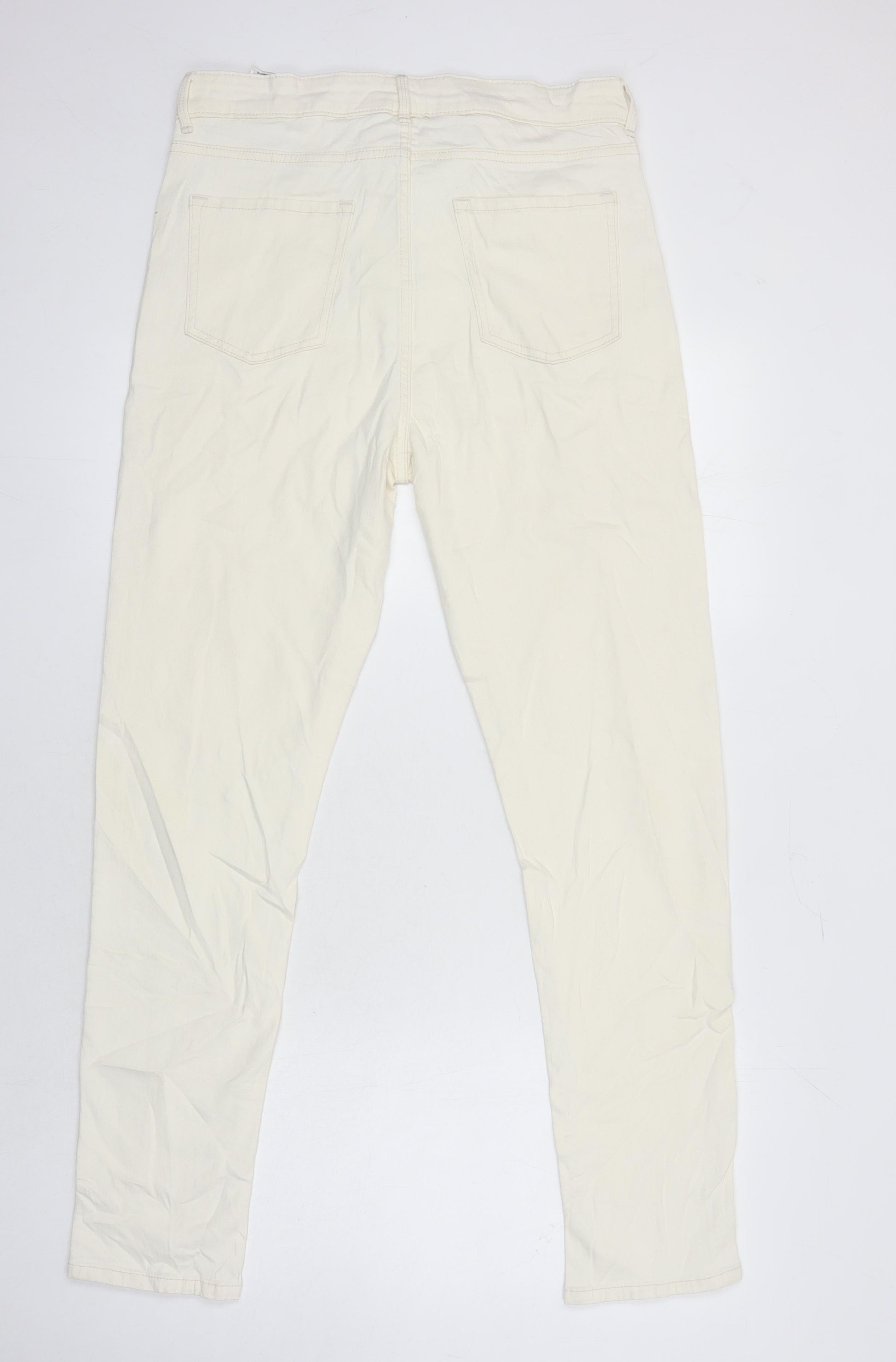 M&S Womens Ivory Cotton Tapered Jeans Size 14 L28.5 in Regular