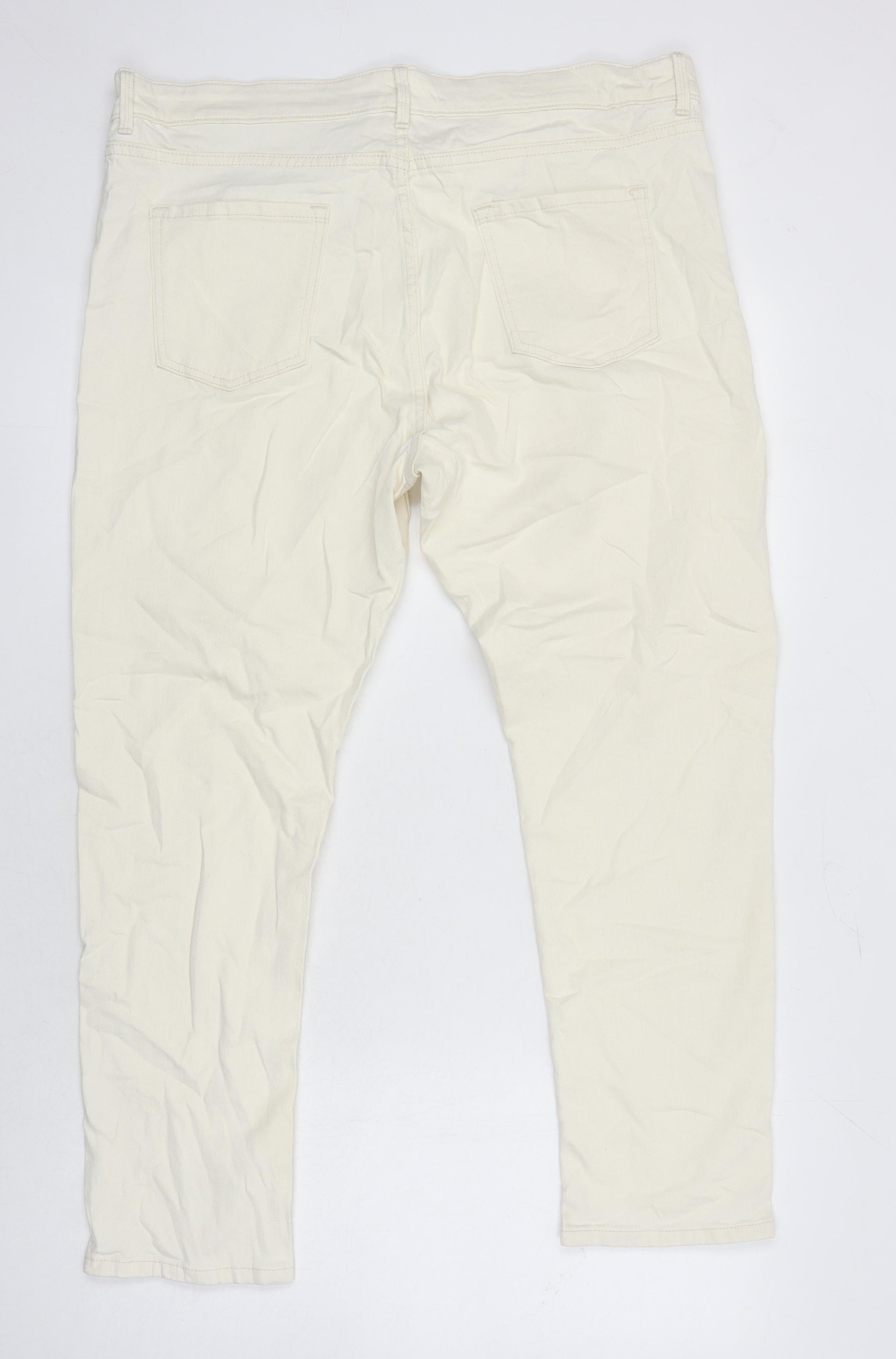 M&S Womens Ivory Cotton Tapered Jeans Size 18 L25 in Regular