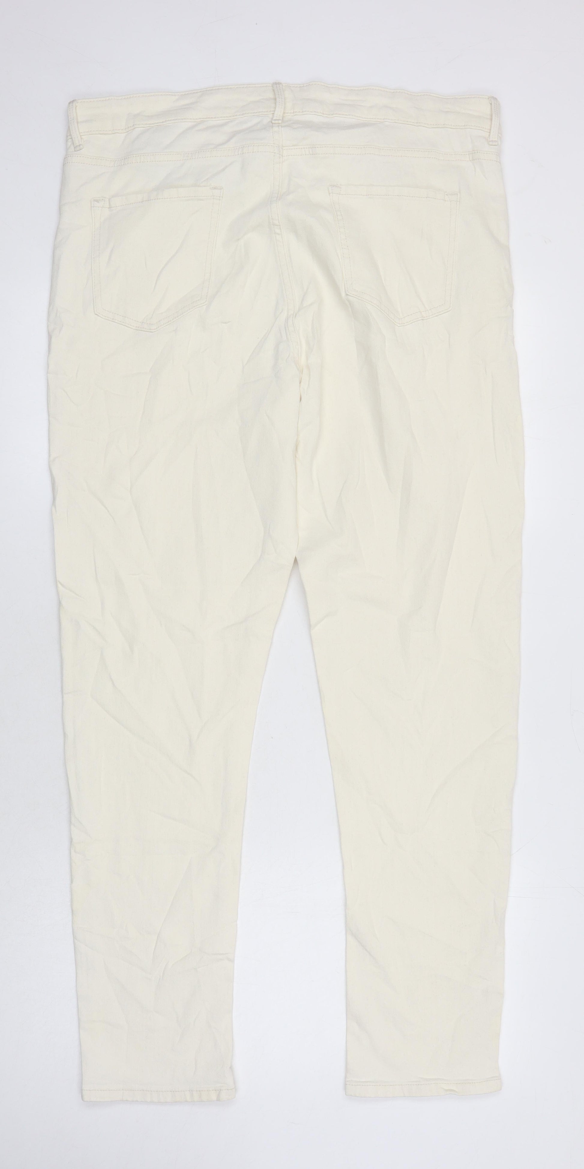 M&S Womens Ivory Cotton Tapered Jeans Size 18 L28.5 in Regular