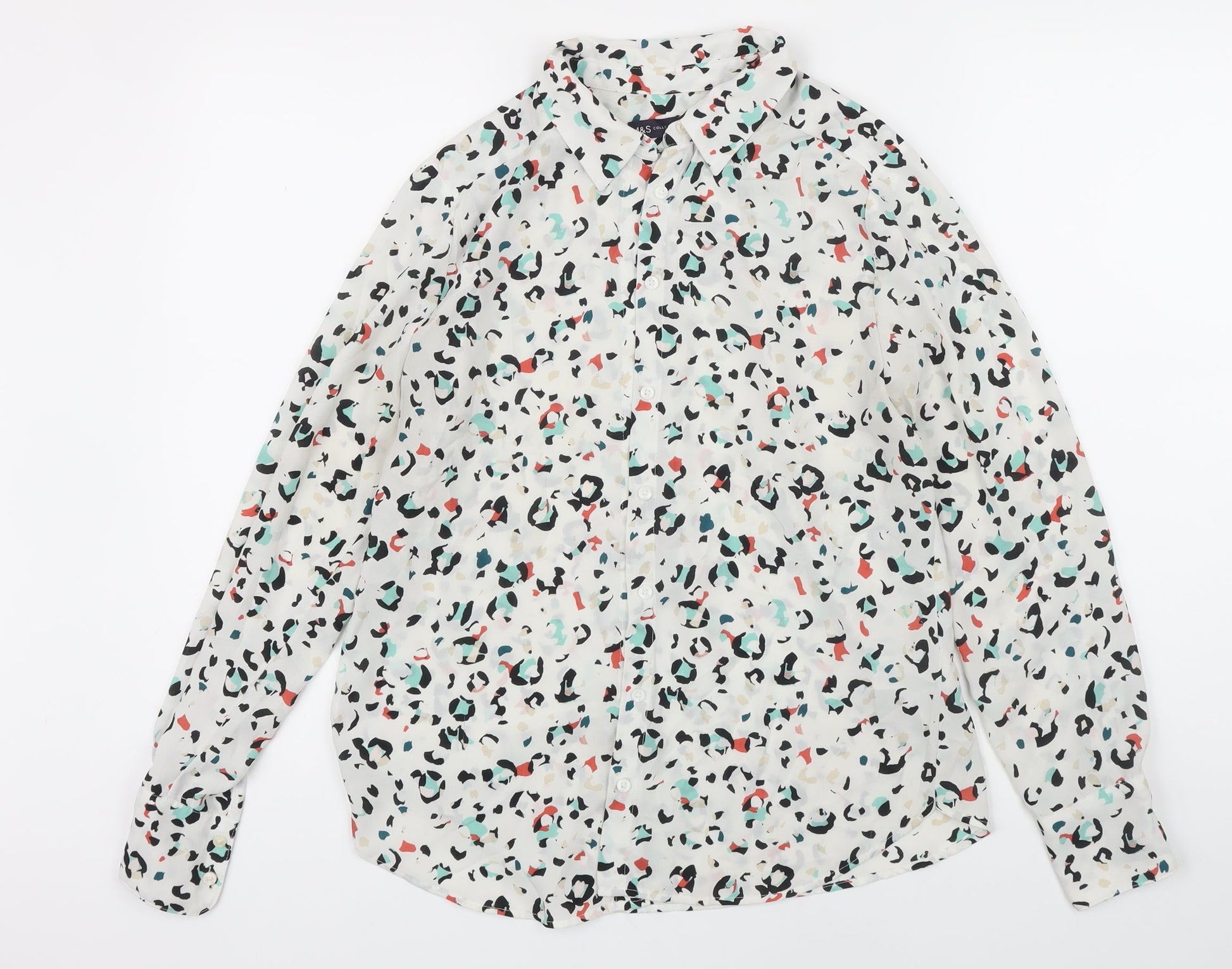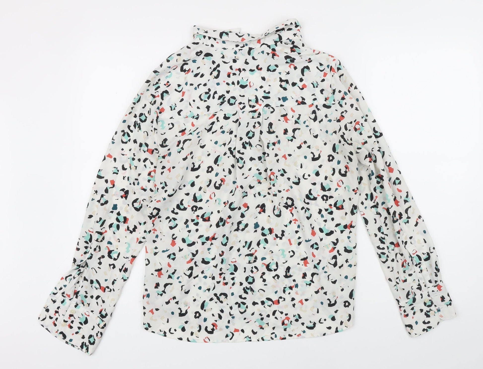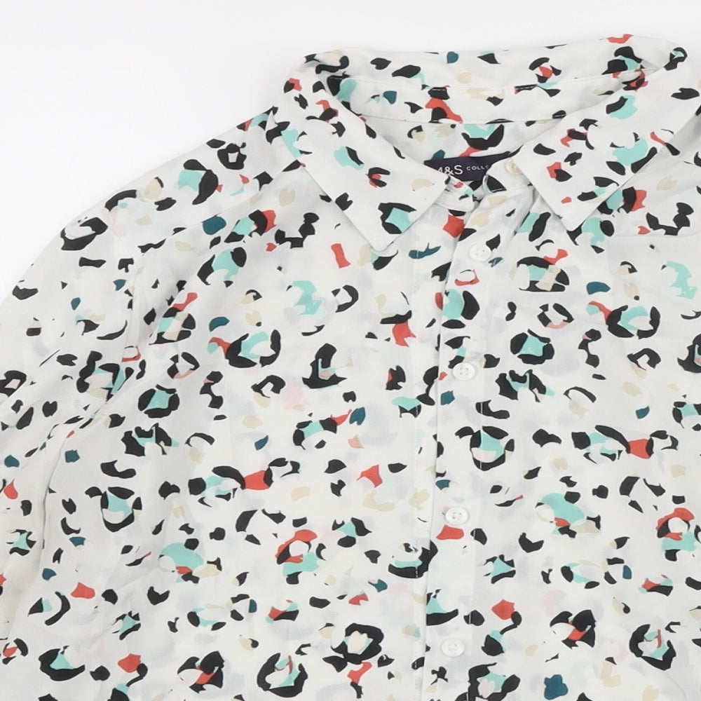 M&S Womens Ivory Geometric Polyester Basic Blouse Size 8 Collared